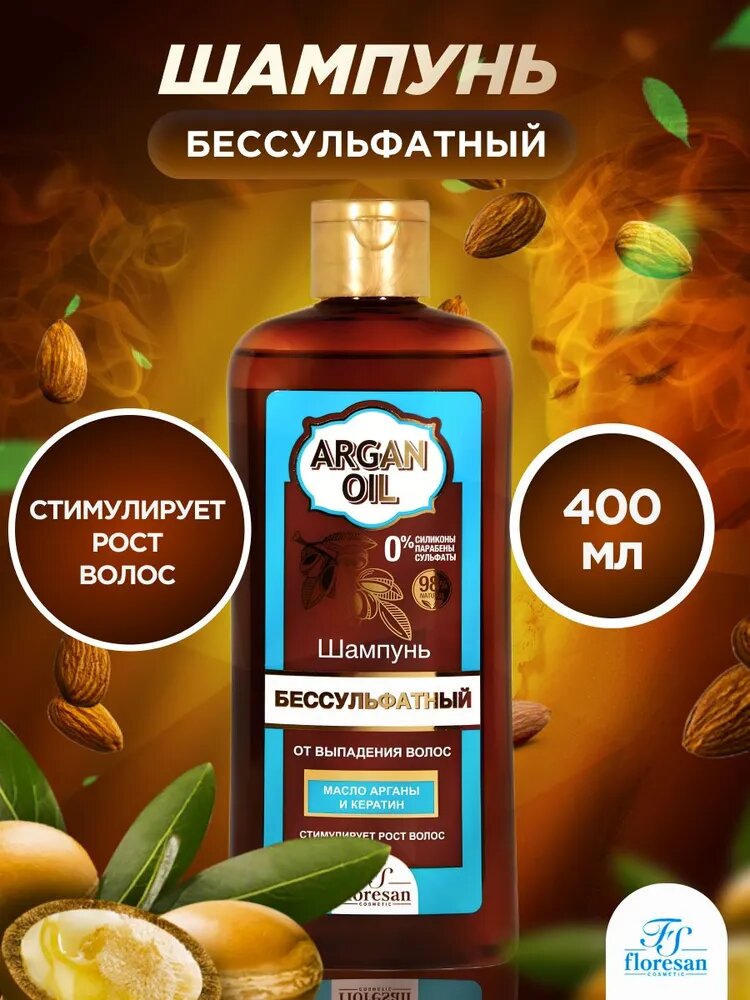 Купить Floresan Шампунь бессульфатный от выпадения волос , масло арганы и кератин,400 мл