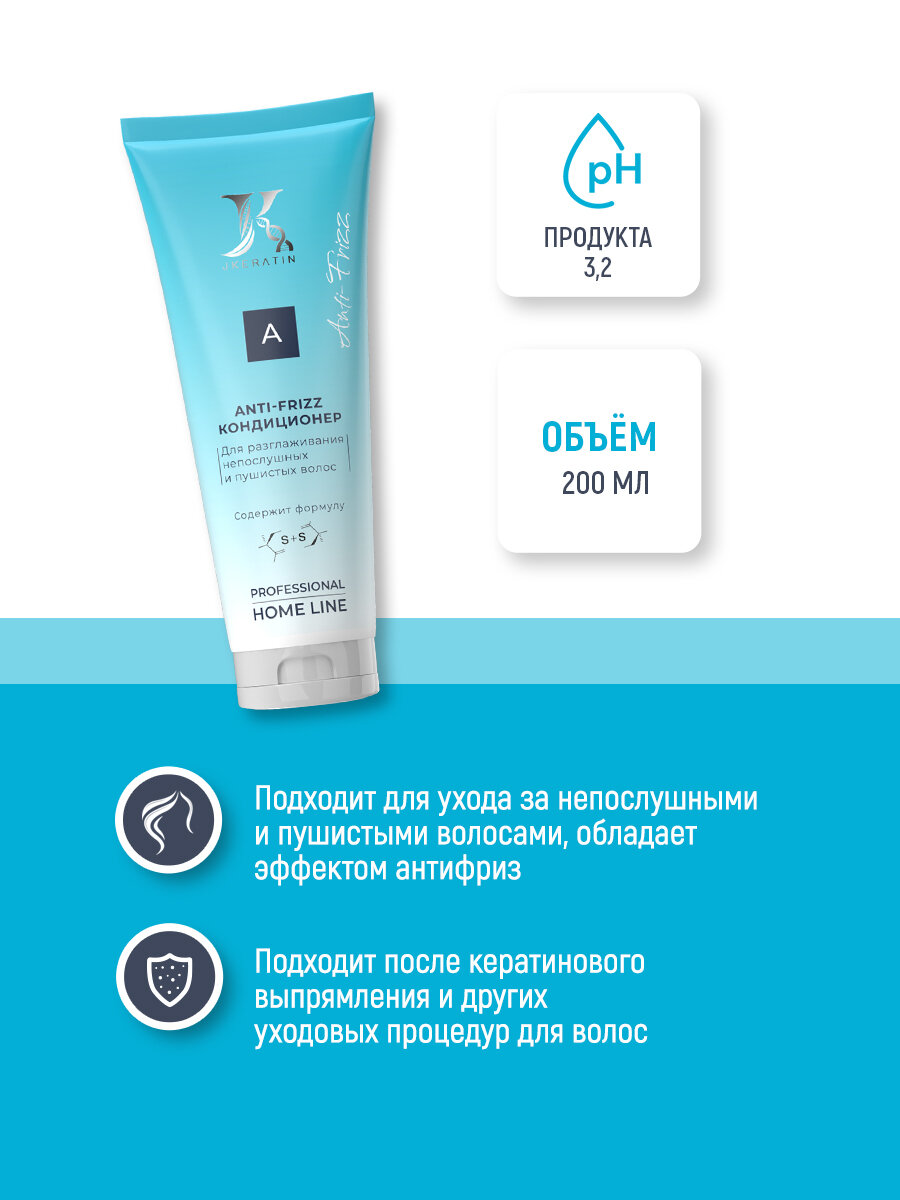 JKeratin Anti-Frizz кондиционер для разглаживания волос с комплексом S+S, 200 мл интересное:
