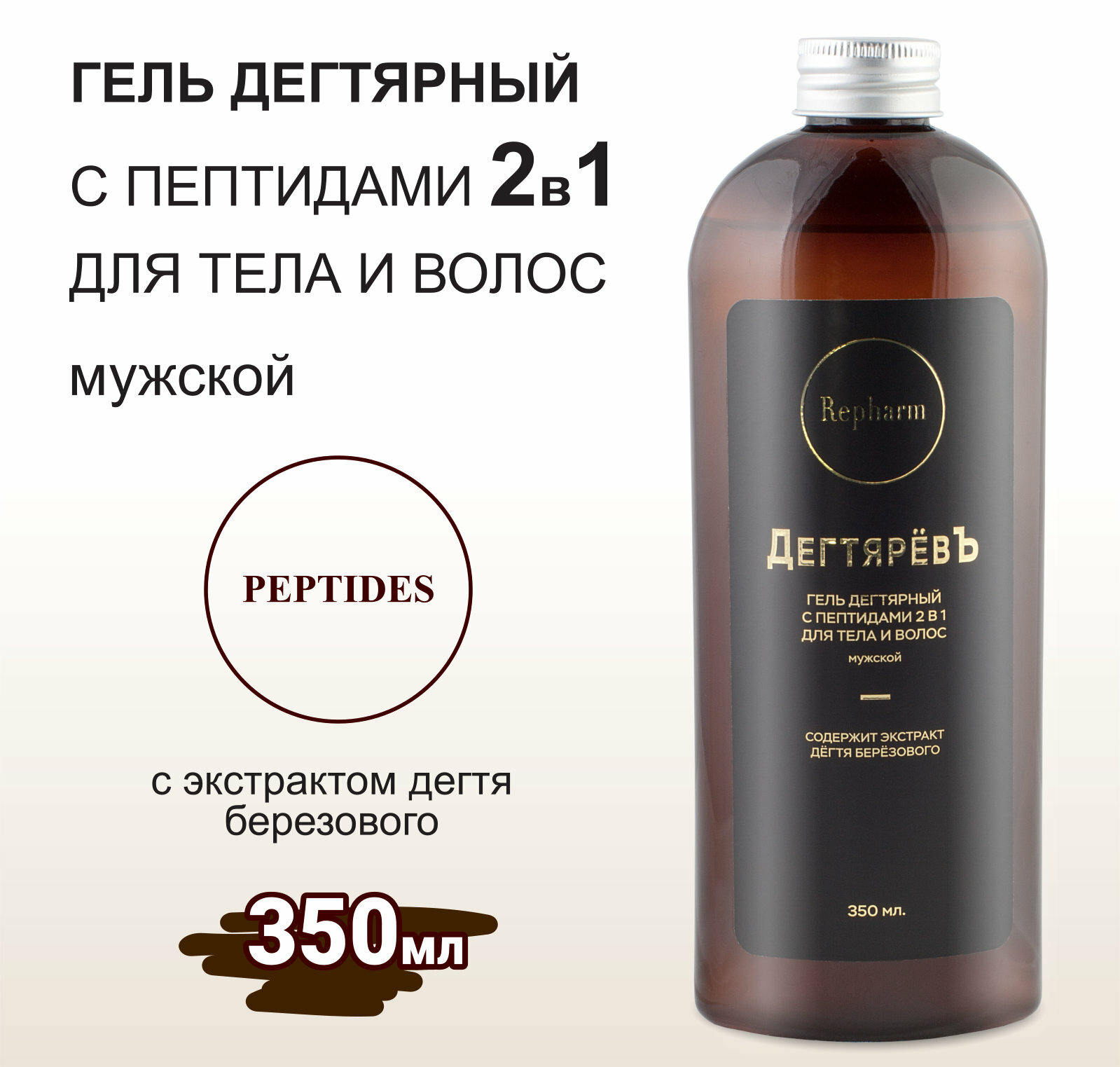 Гель для душа и шампунь Repharm ДегтярёвЪ мужской дегтярный 2 в 1 с пептидами (лечебный, против перхоти) 350 мл интересное: