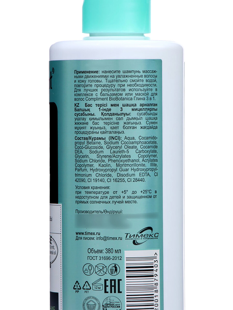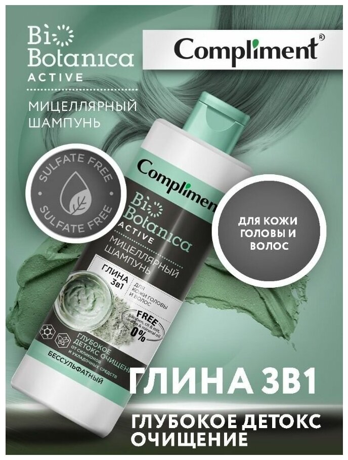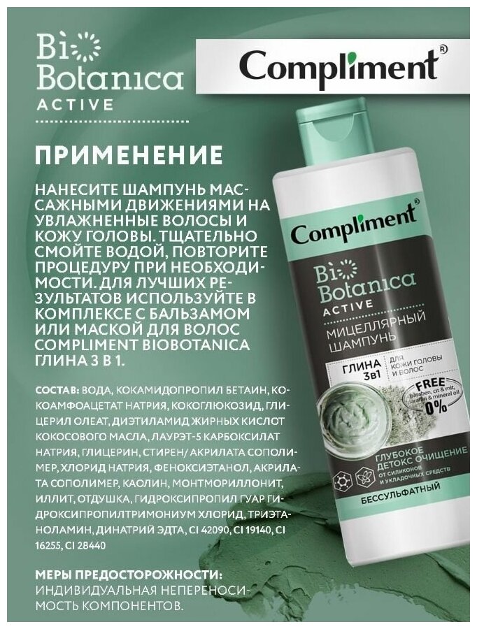 Compliment мицеллярный шампунь BioBotanica Active Глубокое детокс очищение, 380 мл интересное: