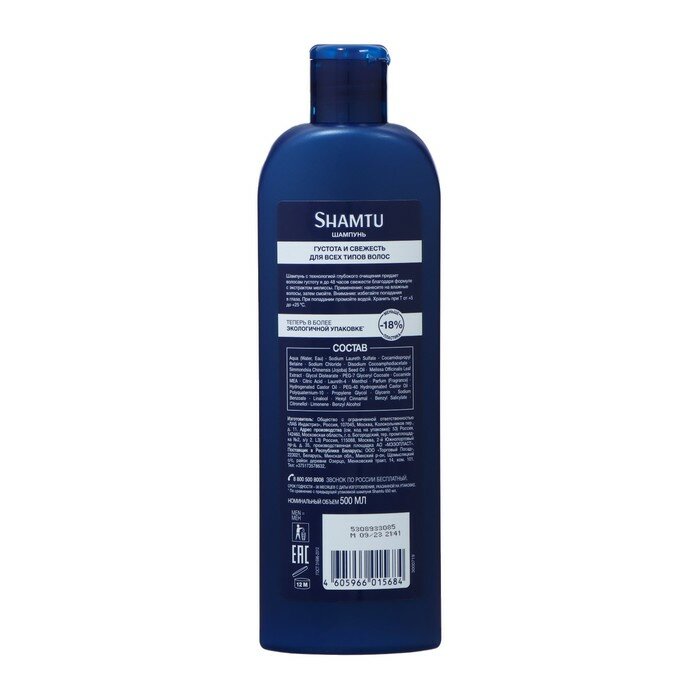 Купить Шампунь для волос мужской SHAMTU Густота и свежесть с экстрактом мелиссы, 500мл