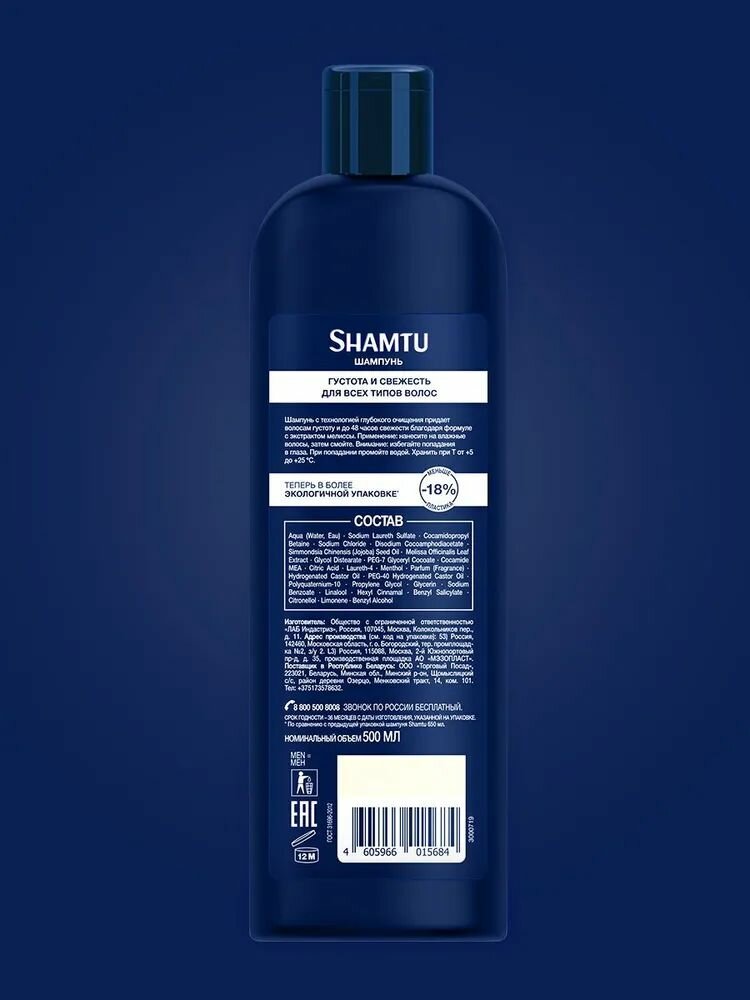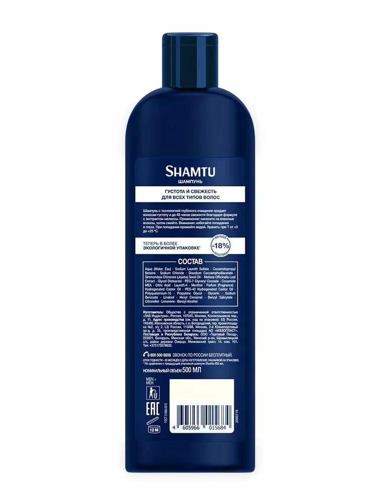 Купить SHAMTU men Шампунь Густота и свежесть с экстрактом мелиссы для мужчин, 500 мл х 3 шт