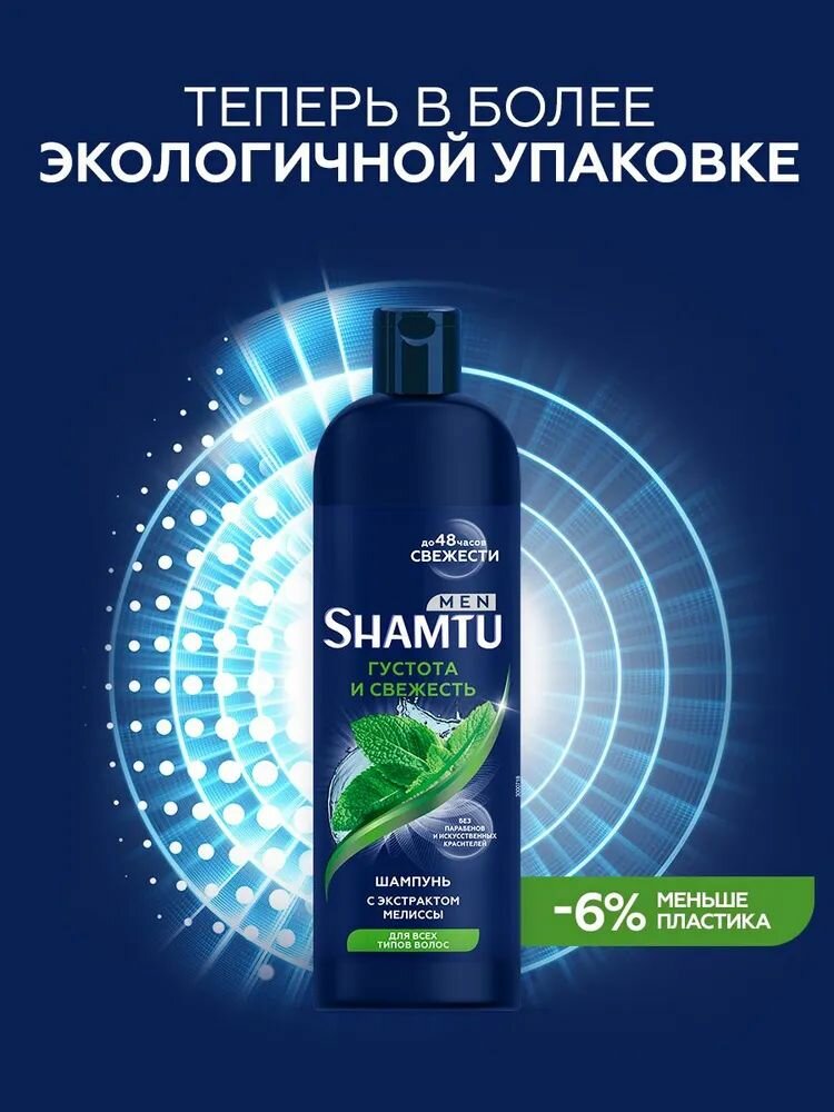 Шампунь для волос SHAMTU MEN Густота и свежесть с мелиссой, 500 мл
