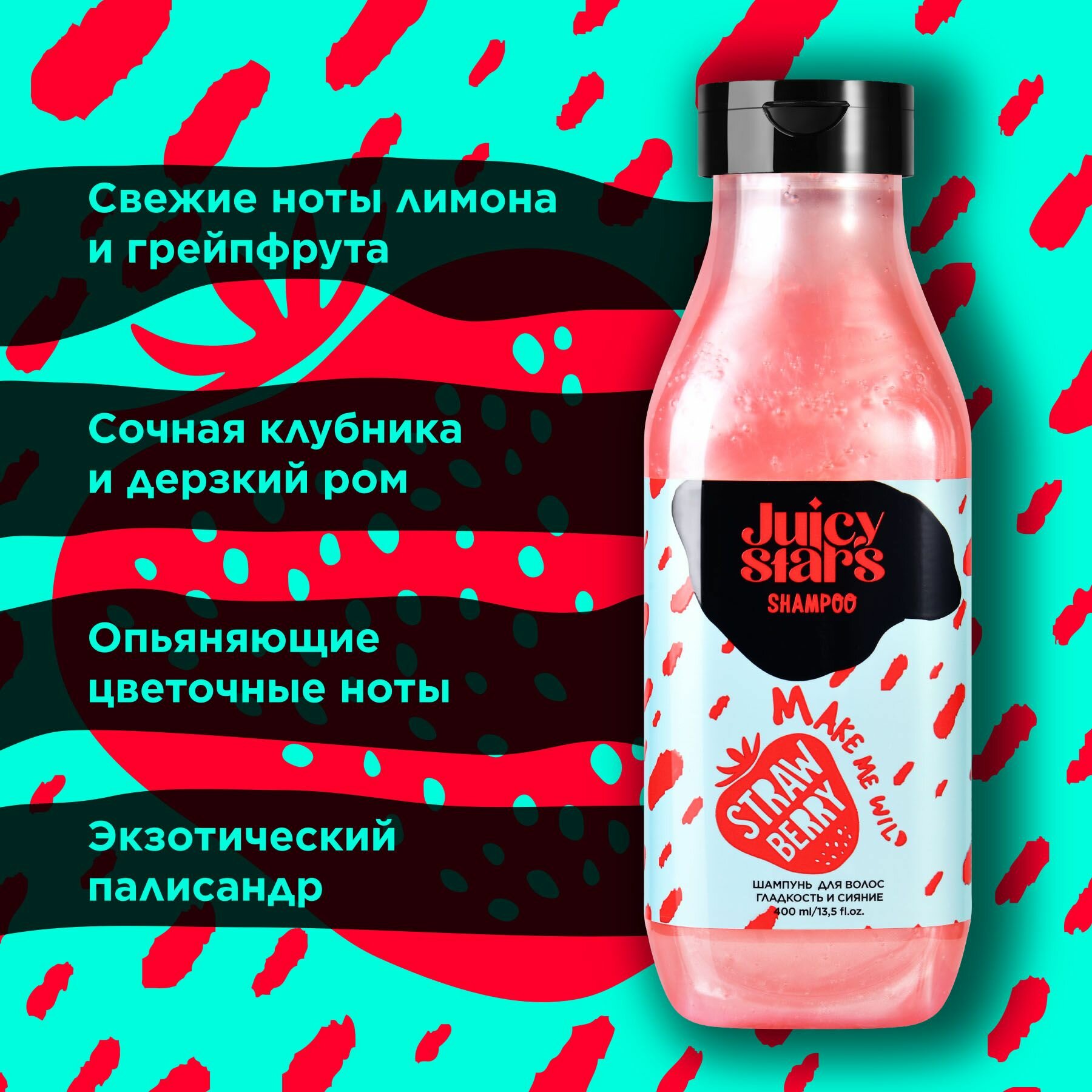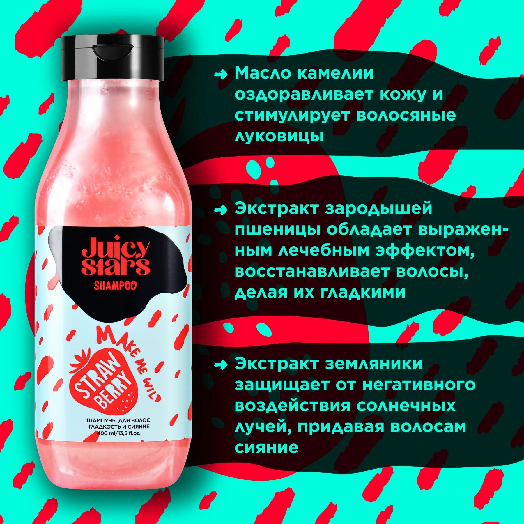 JUICY STARS Шампунь "MAKE ME WILD", для волос, аромат земляники, 400мл интересное: