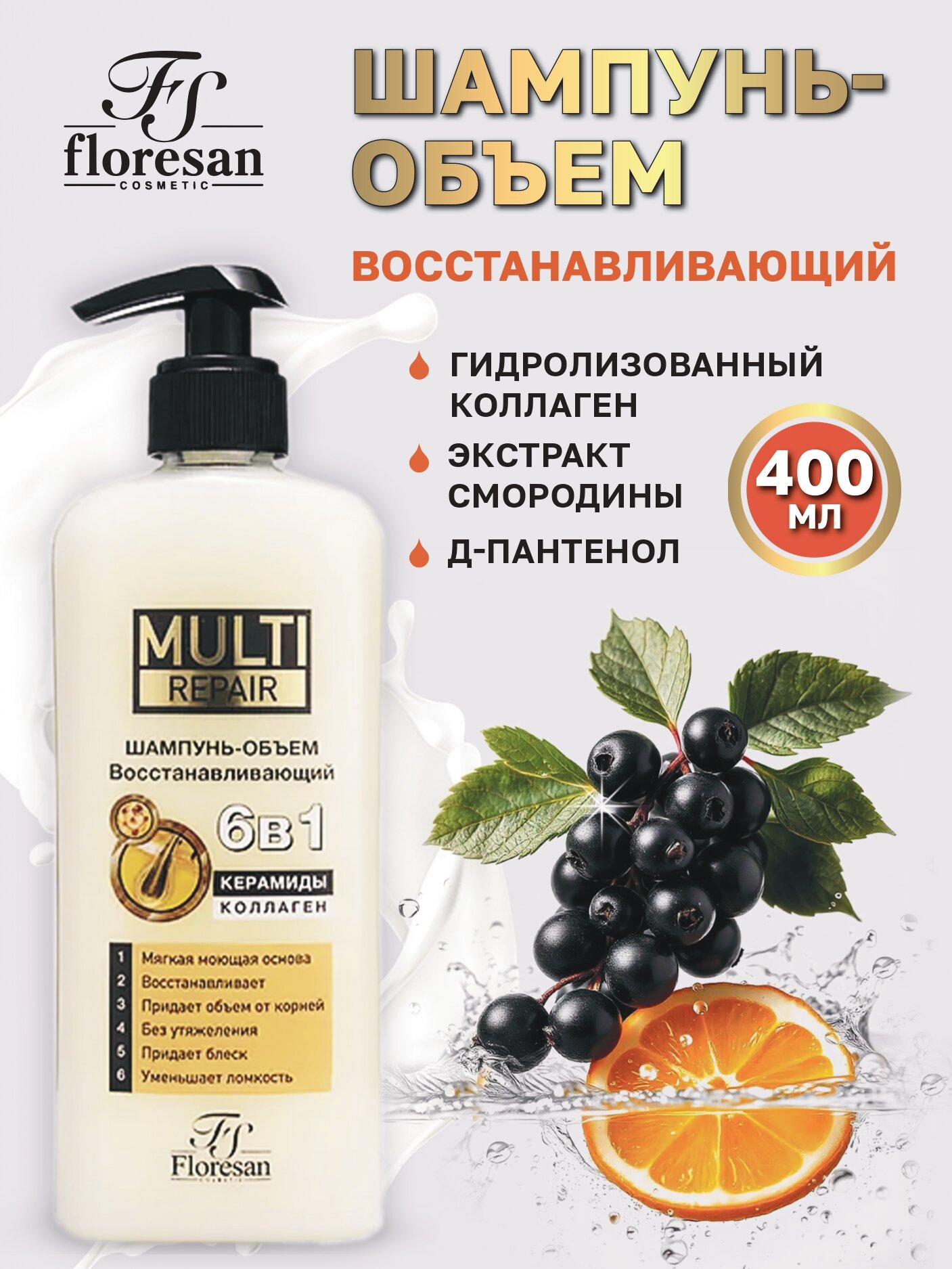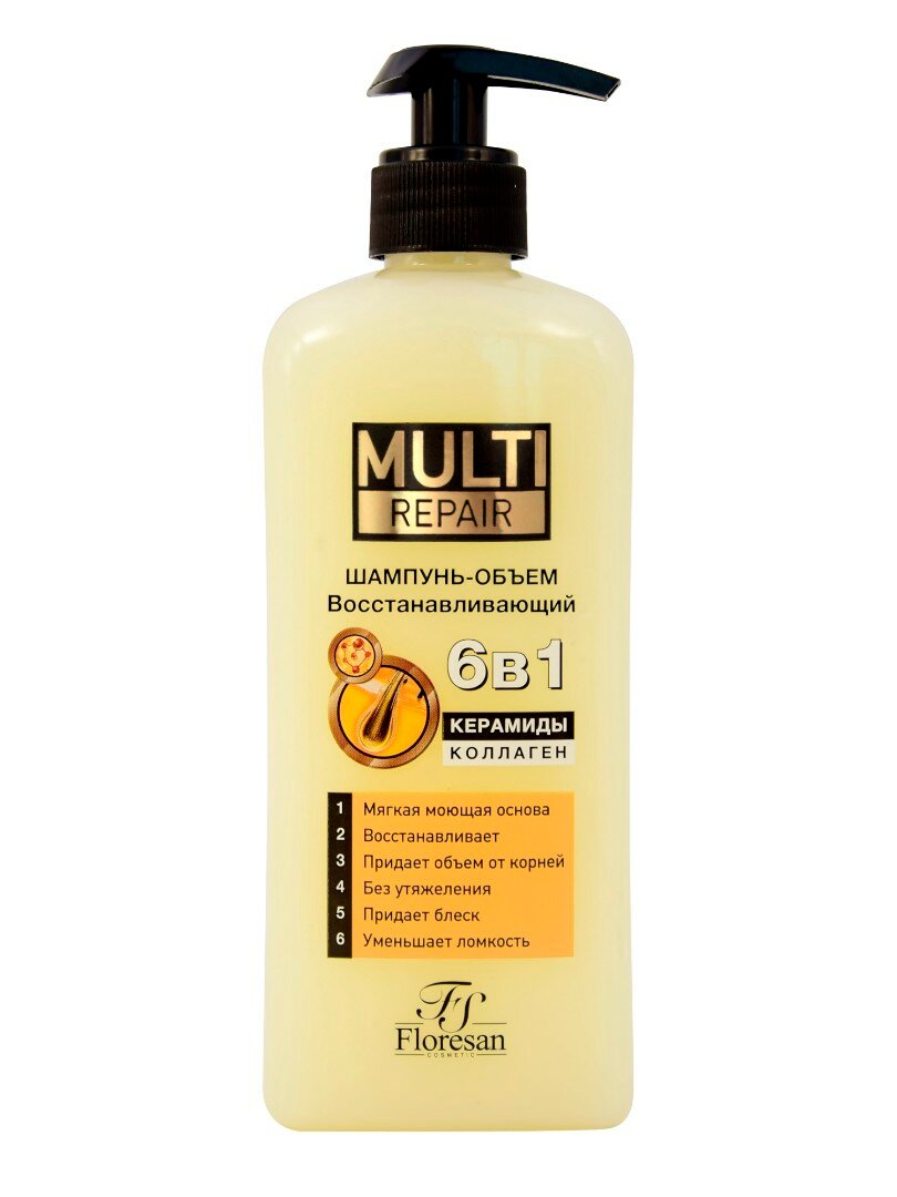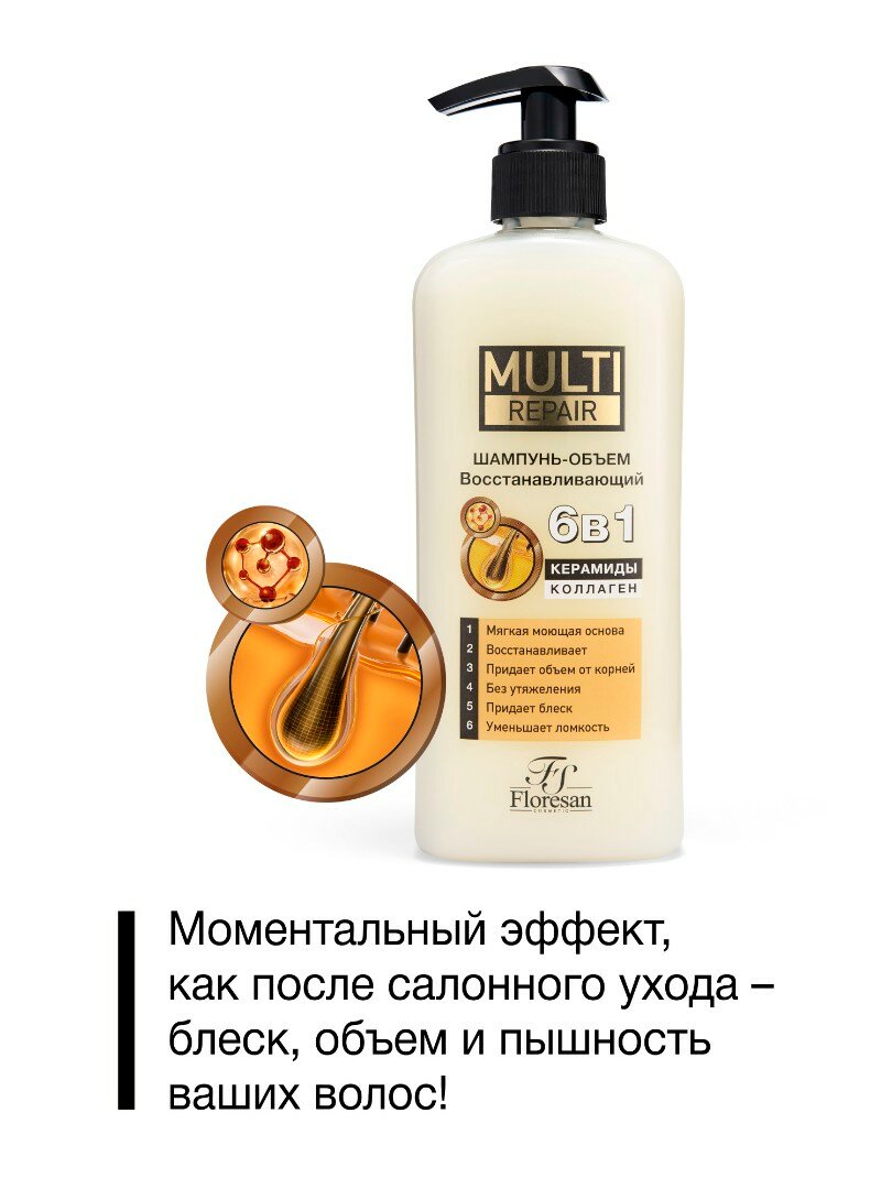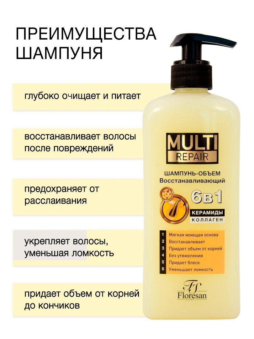 Купить Floresan Шампунь-объем восстанавливающий 6 в1 керамиды и коллаген MULTI repair 400мл