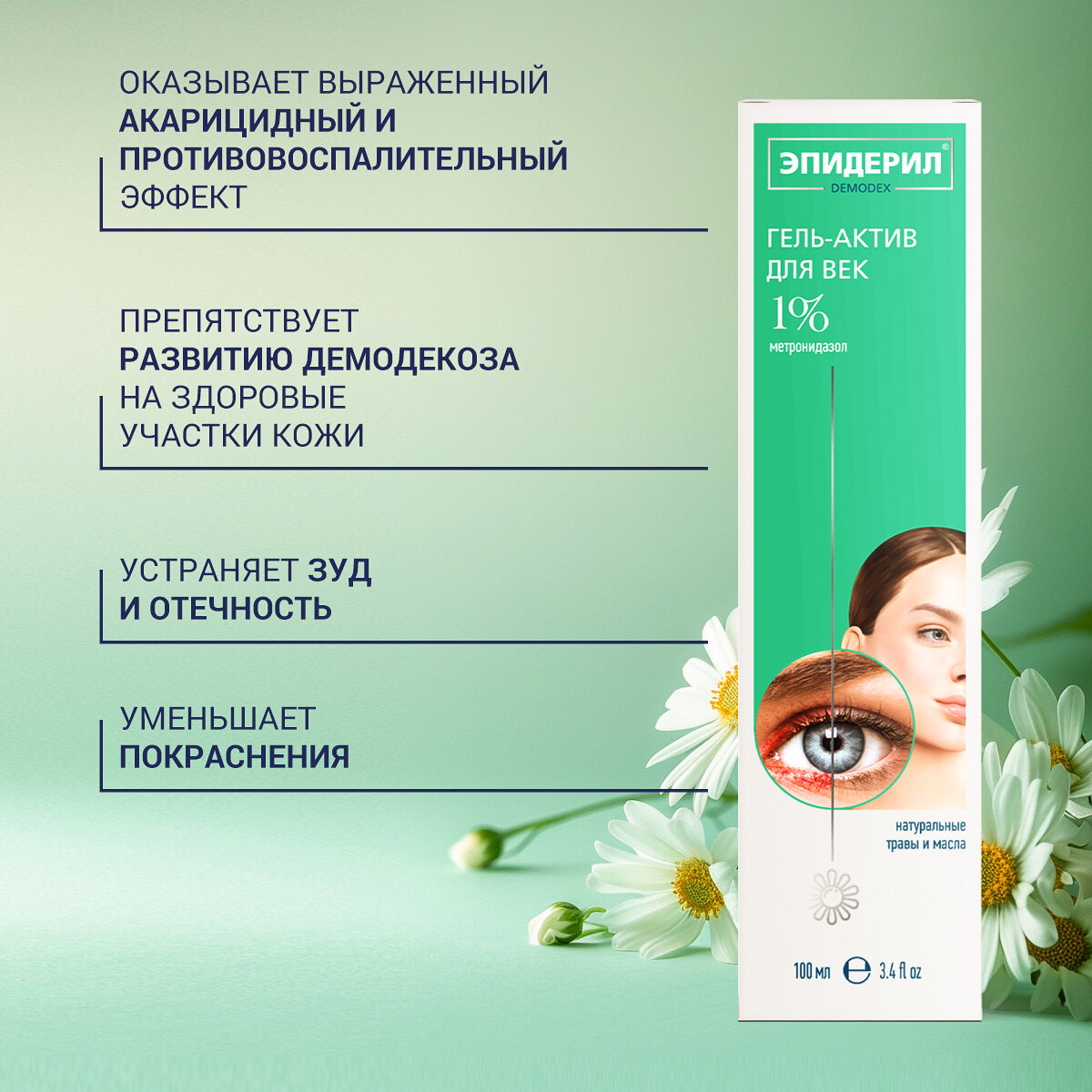 Гель для век от демодекоза и дерматитов век Эпидерил Demodex 100мл интересное: