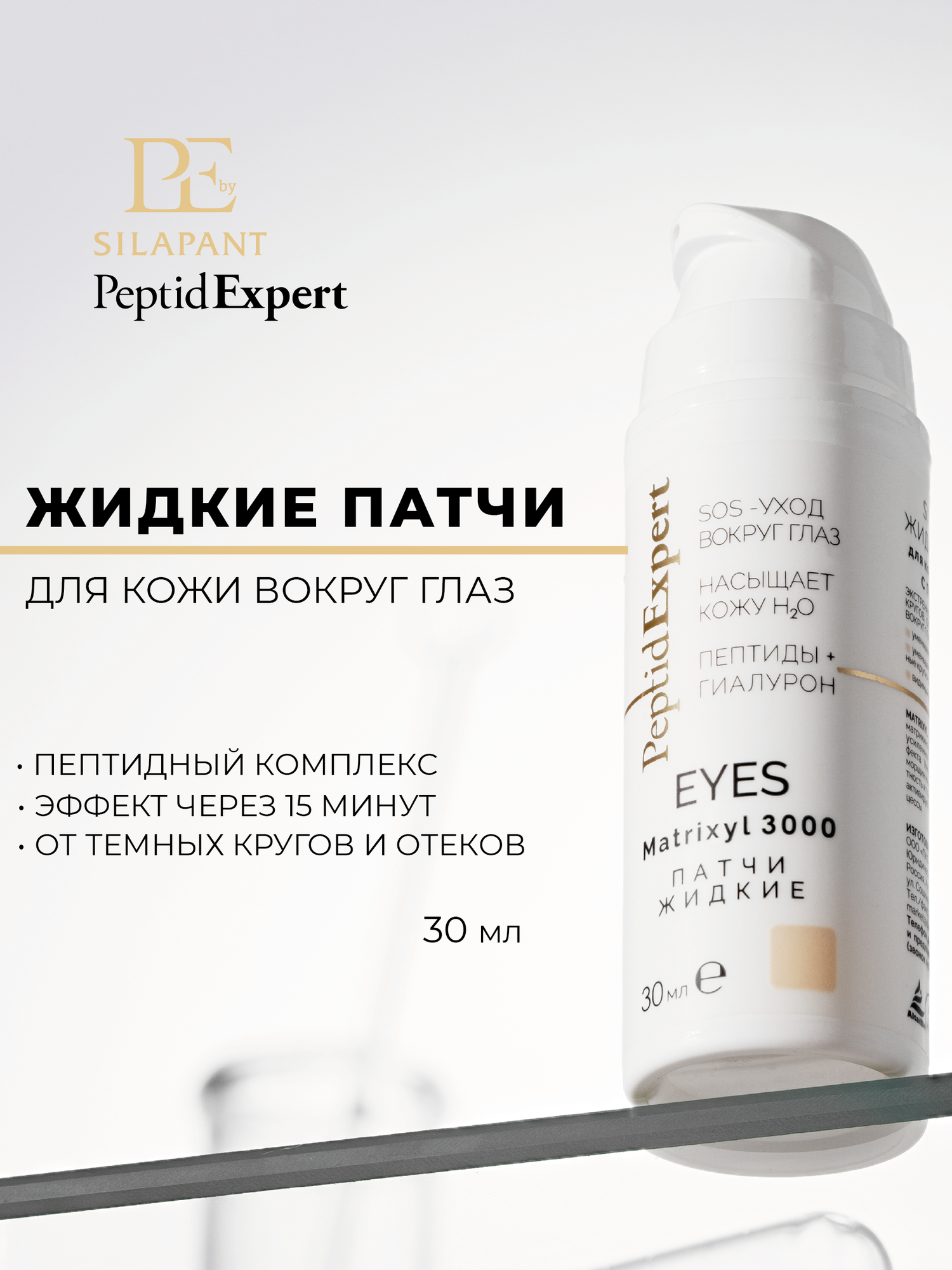 Купить Силапант, жидкие патчи для кожи вокруг глаз с пептидами и кофеином, эффект за 15 минут, 30 мл
