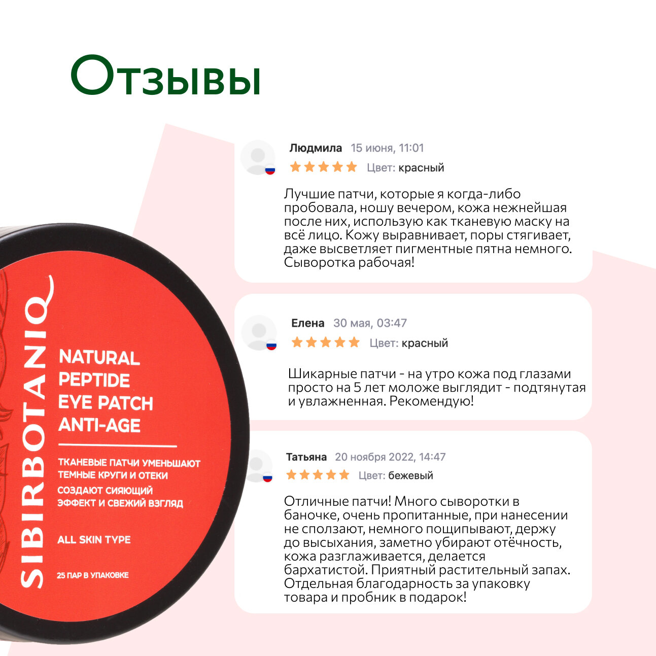 Ниже Вы можете прочитать отзывы на Патчи для глаз SIBIRBOTANIQ тканевые натуральные с пептидами 50 шт., ознакомится с подробными характеристиками, посмотреть интересные обзоры и фотографии на Патчи для глаз SIBIRBOTANIQ тканевые натуральные с пептидами 50 шт..