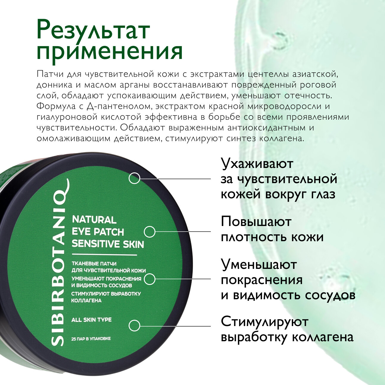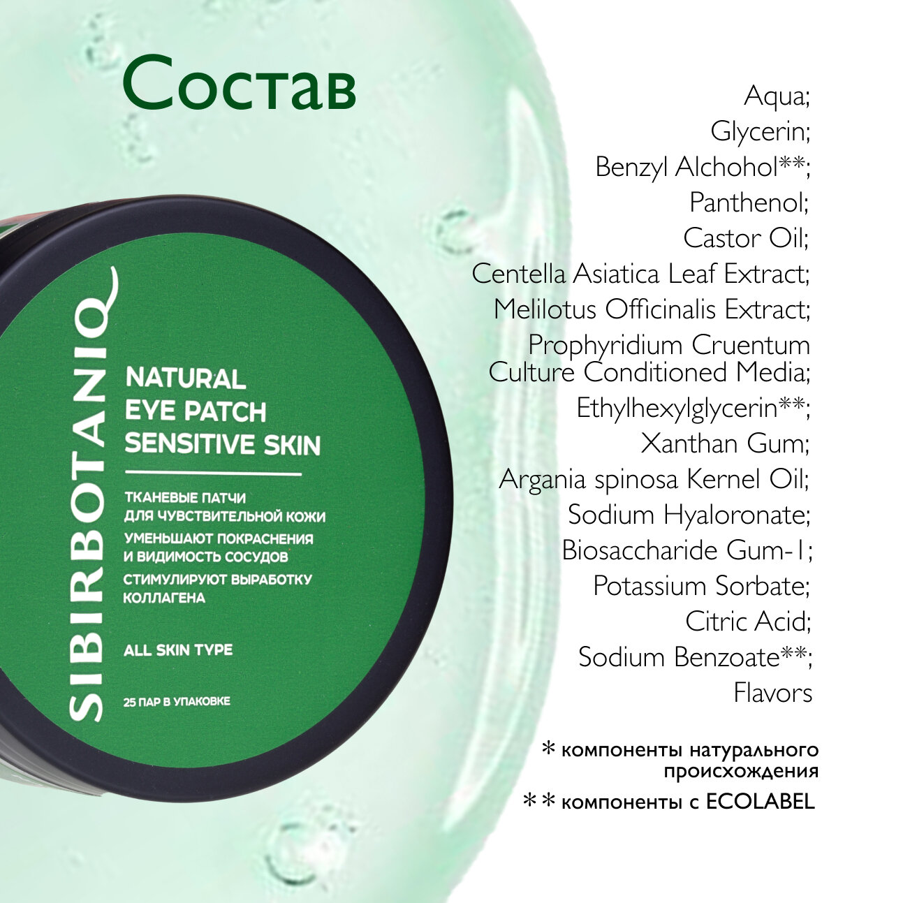 Патчи для глаз тканевые SIBIRBOTANIQ натуральные уменьшают покраснения 50 шт. интересное: