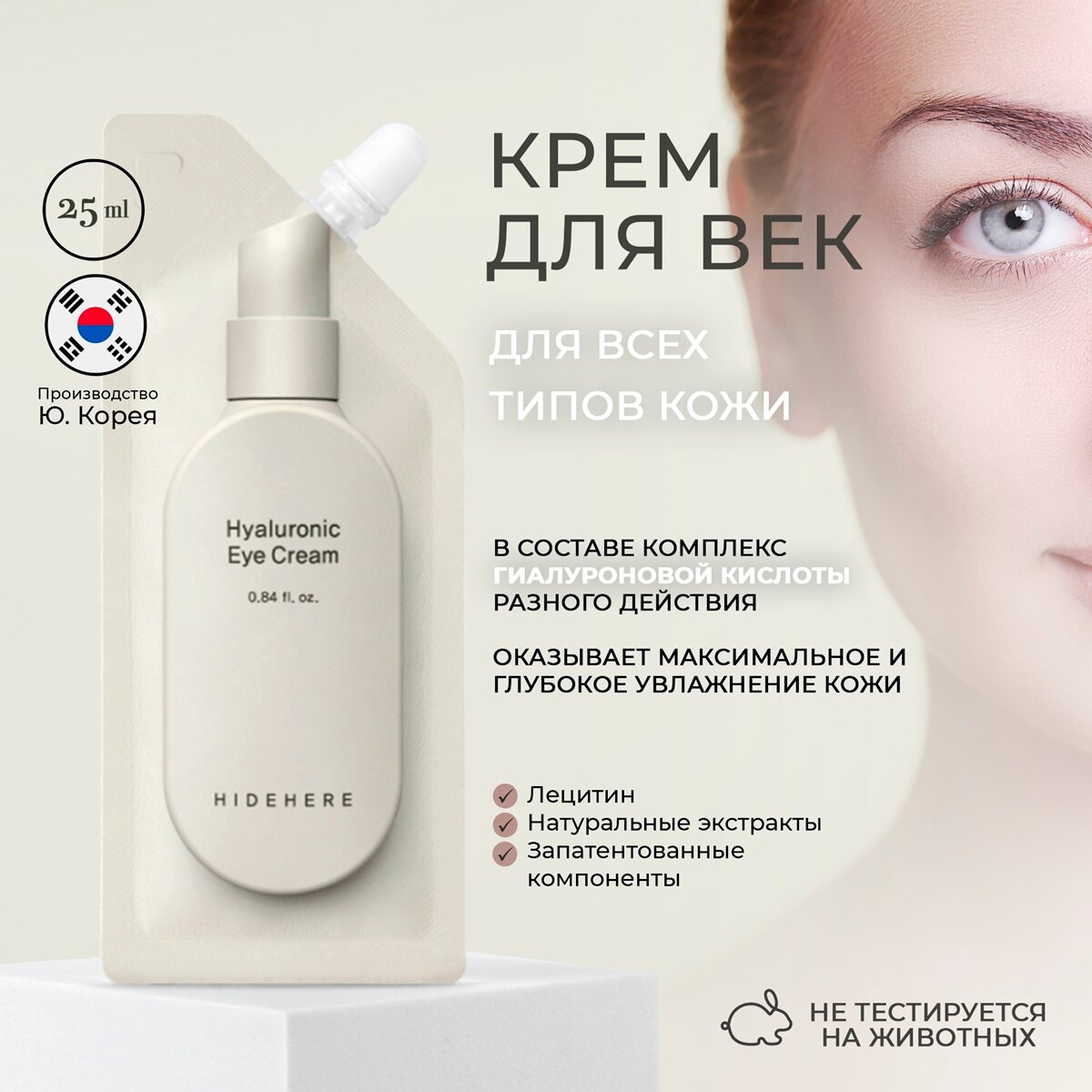 Крем увлажняющий с гиалуроновой кислотой для век Hidehere Hyaluronic Eye Cream, 25 мл интересное:
