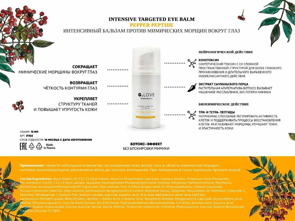 G.Love Интенсивный бальзам против мимических морщин вокруг глаз "Pepper Peptide", 15 мл интересное: