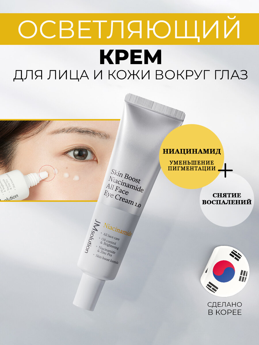 Купить Крем для кожи вокруг глаз с ниацинамидом JMSOLUTION SKIN BOOST NIACINAMIDE ALL FACE EYE CREAM 1.0, Корея 30 мл