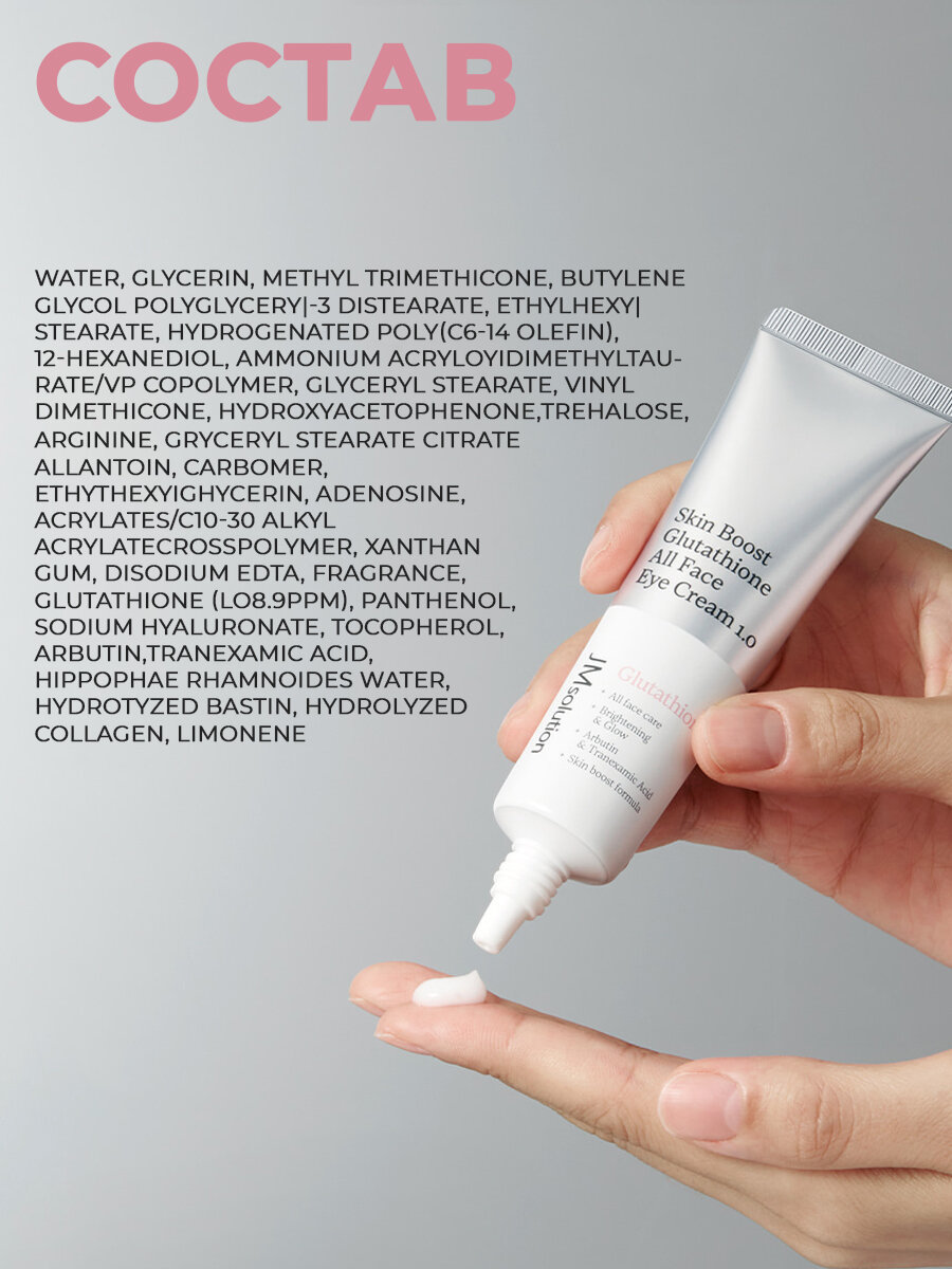 Крем для кожи вокруг глаз с глутатионом JMSOLUTION SKIN BOOST GLUTATHIONE ALL FACE EYE CREAM 1.0, 30 мл интересное: