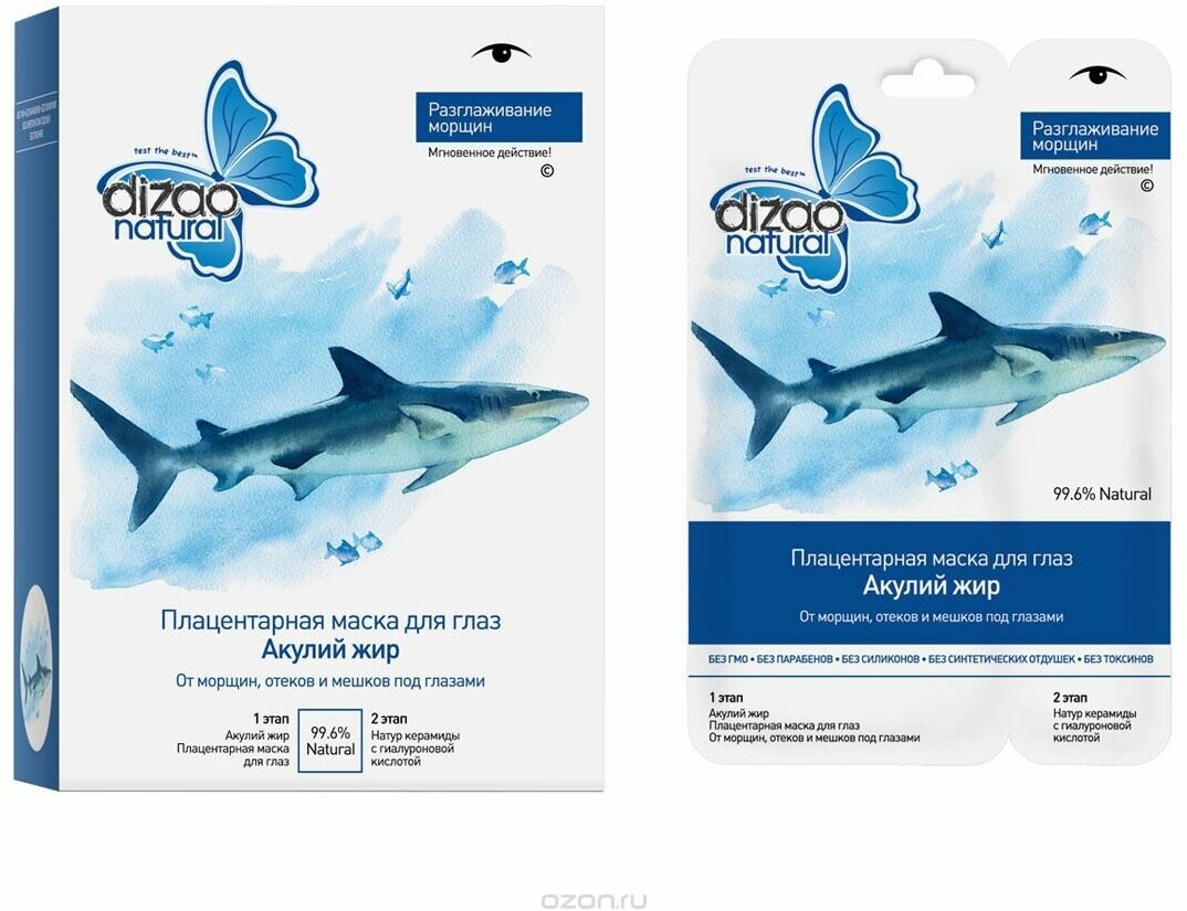 Маска для глаз тканевая Dizao плацентарная, акулий жир, 2-х этапная, 10 шт интересное: