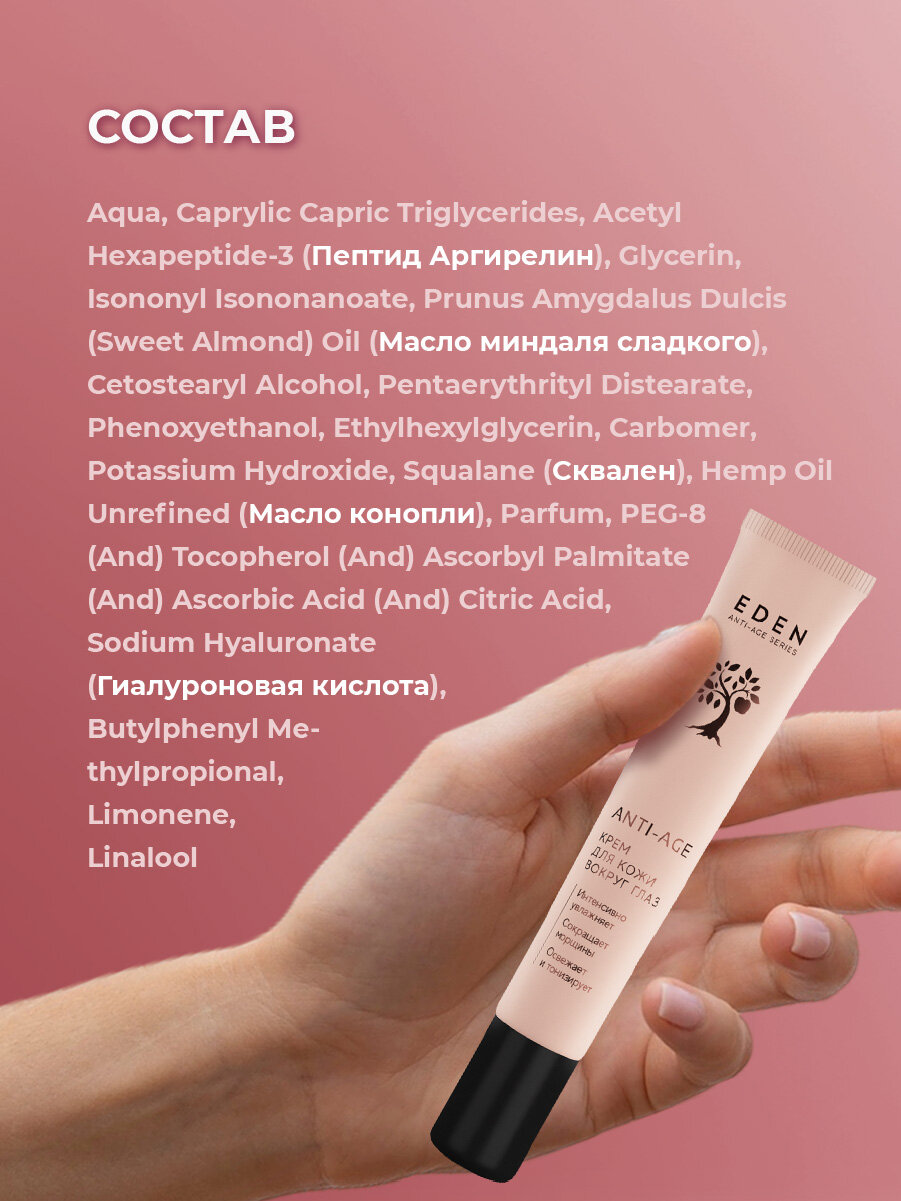 Крем для кожи вокруг глаз EDEN антивозрастной от морщин Anti-Age 20мл интересное: