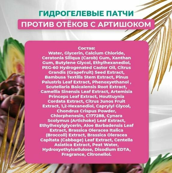 Petitfee гидрогелевые патчи для глаз с экстрактом артишока Artichoke Sooting Hydrogel Eye Mask интересное:
