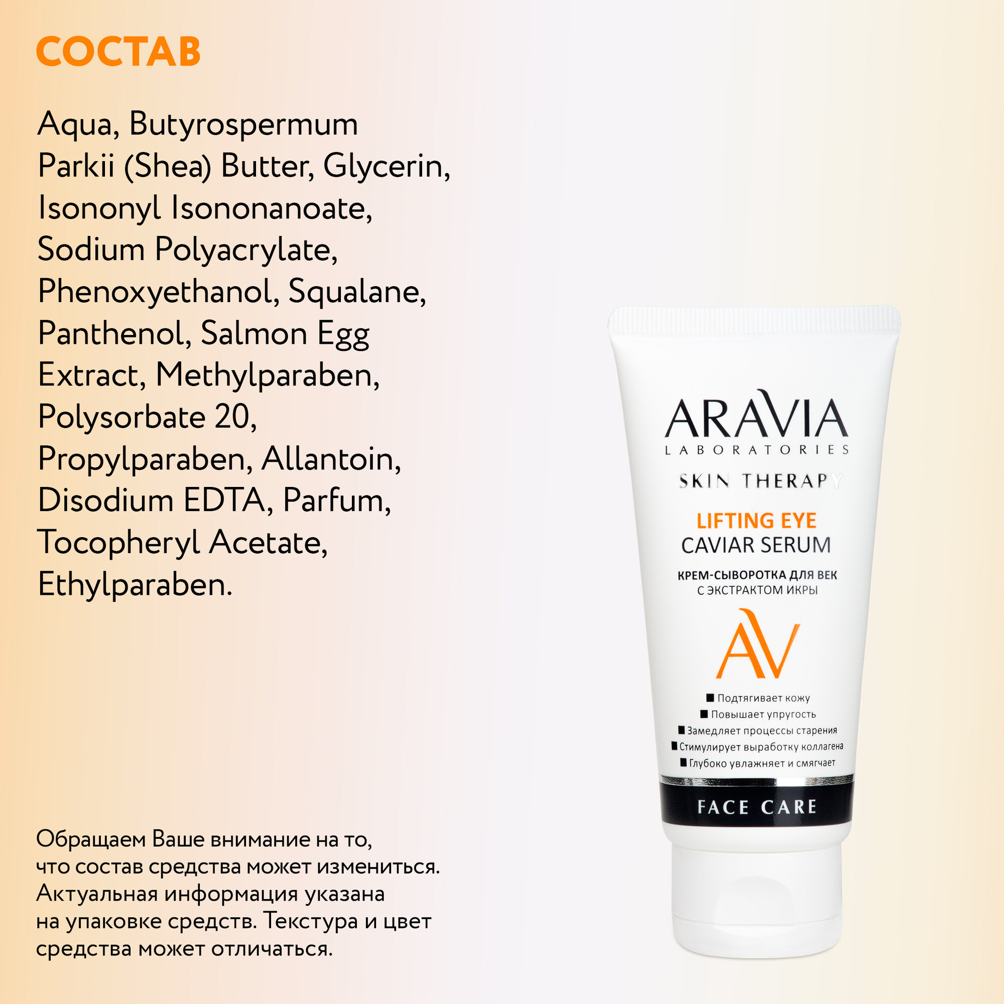 ARAVIA Крем-сыворотка для век с экстрактом икры Lifting Eye Caviar Serum, 50 мл интересное: