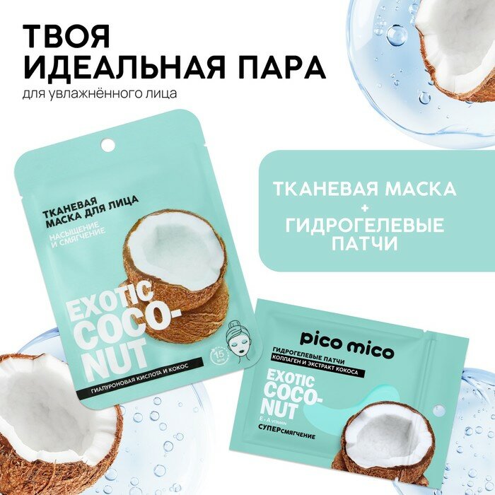 Патчи для области вокруг глаз Exotic coconut, гидрогелевые с коллагеном и экстрактом кокоса, PICO MICO-1 пара интересное: