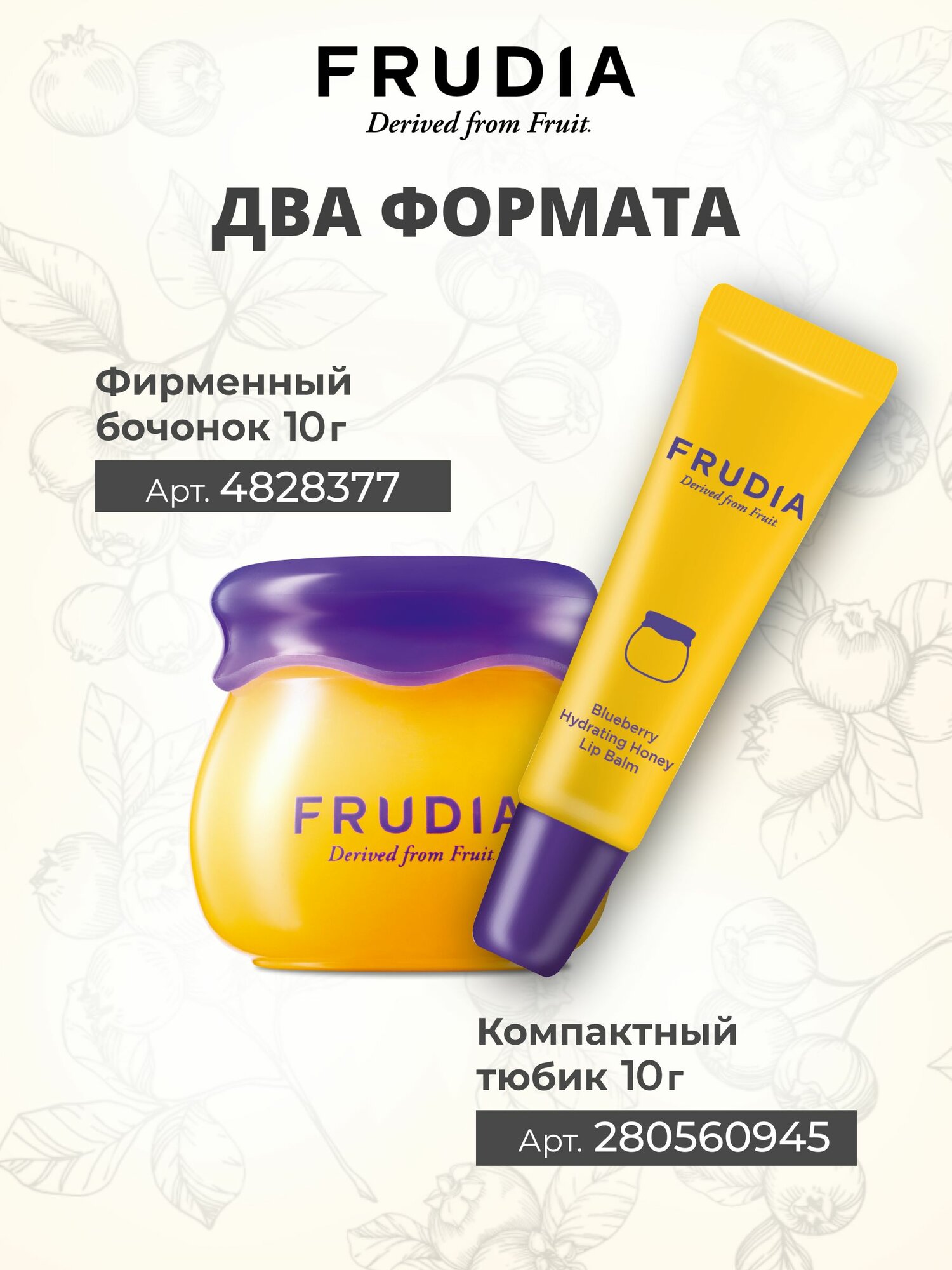 FRUDIA Набор подарочный бальзам для губ от трещин увлажняющий с черникой и медом в баночке 2*10 г, Корея интересное: