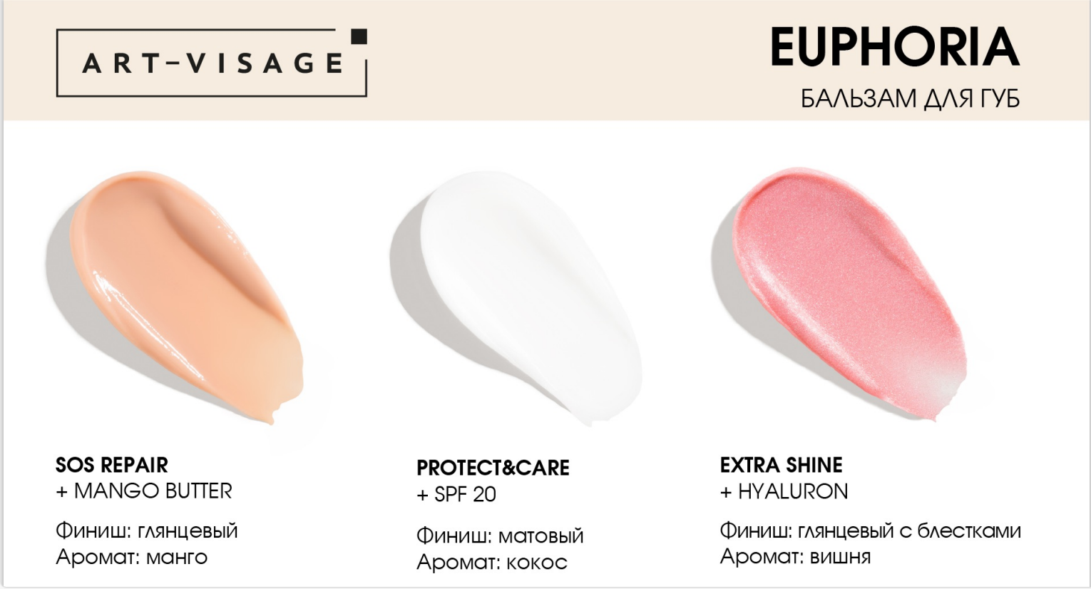 ART-VISAGE Бальзам для губ "EUPHORIA Protect&Care", защита и уход + SPF 20 интересное: