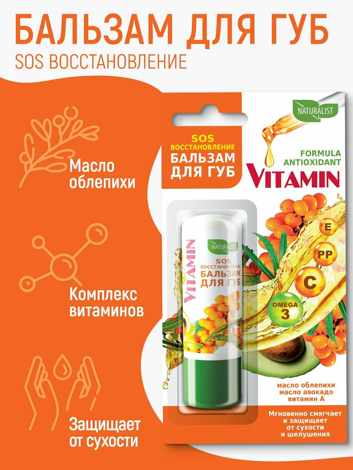 Купить NATURALIST Бальзам для губ витамин SOS-восстановление 4,5 г