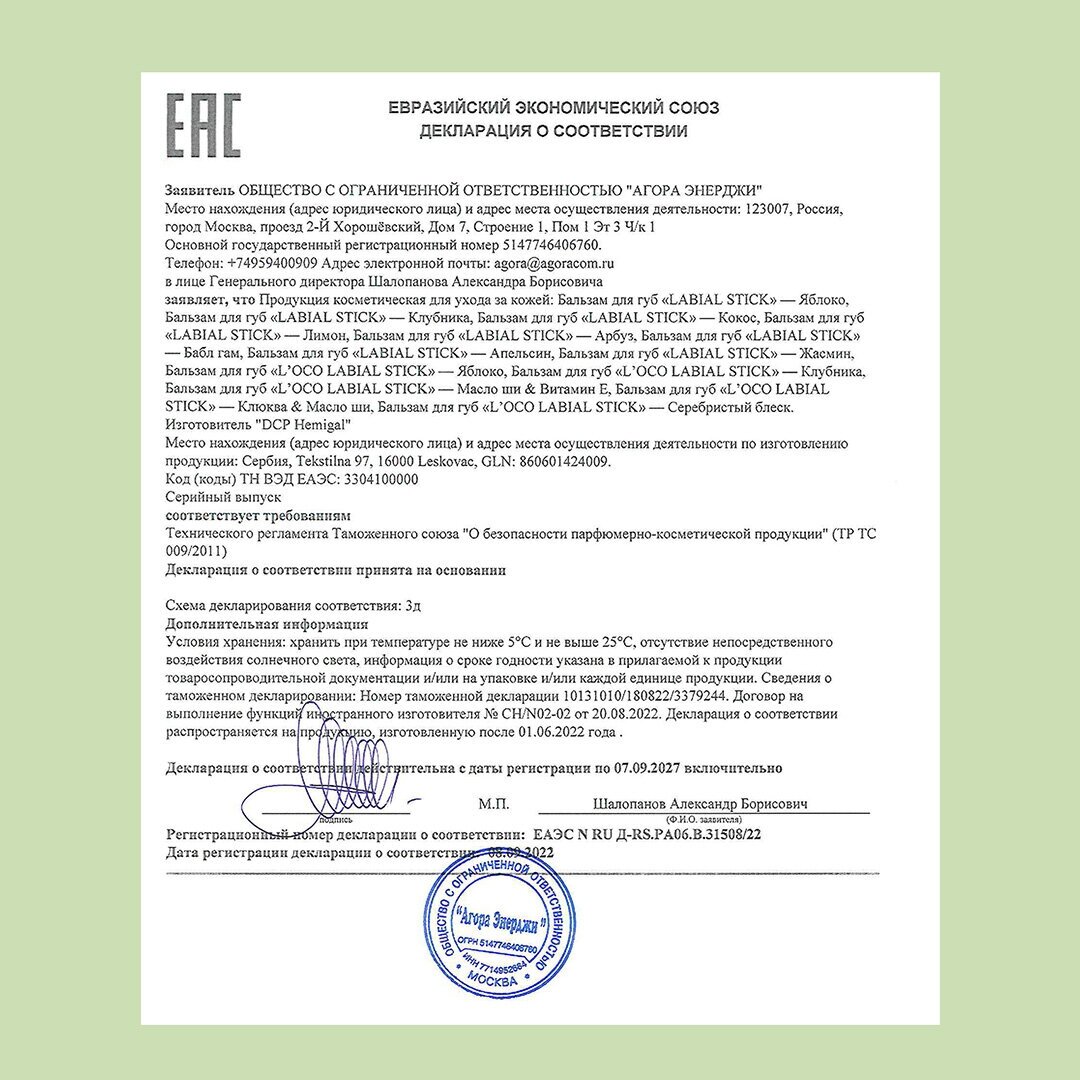 СохранитьБальзам для губ L`oco LABIAL STICK, увлажняющий, Яблоко 4,4гр интересное: