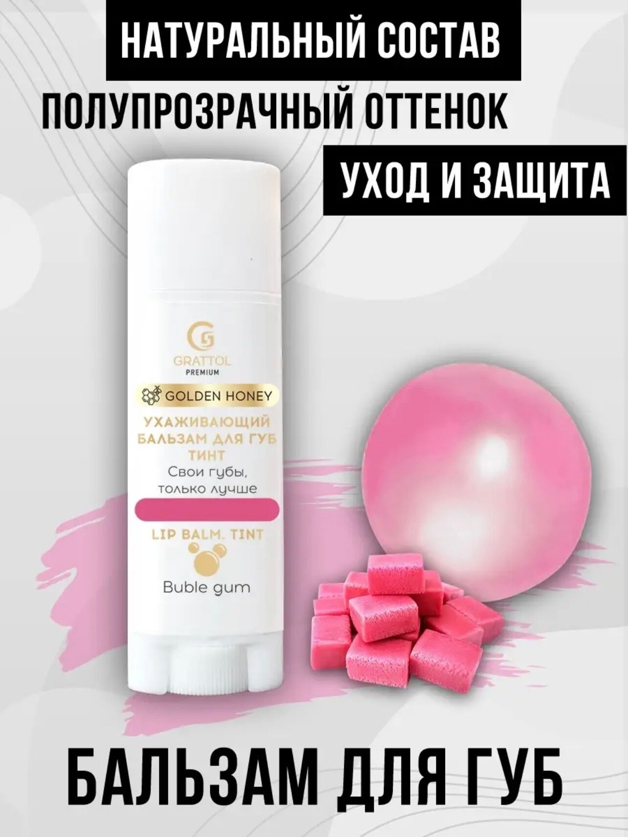 Grattol Premium Lip balm Tint Bubble Gum - Бальзам тинт для губ с ароматом Жевательной резинки интересное: