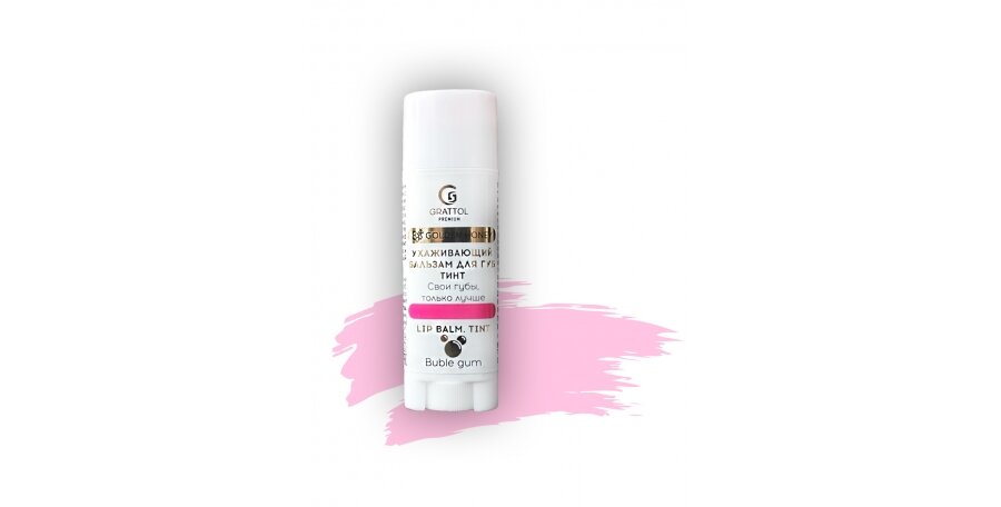 Grattol Premium Lip balm Tint Bubble Gum - Бальзам тинт для губ с ароматом Жевательной резинки