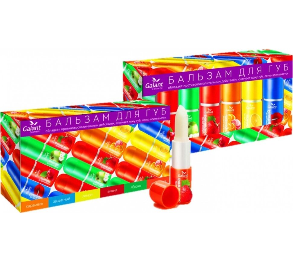 Бальзам для губ Galant Cosmetic "Фруктовый микс", 6 ароматов, защита от холода интересное: