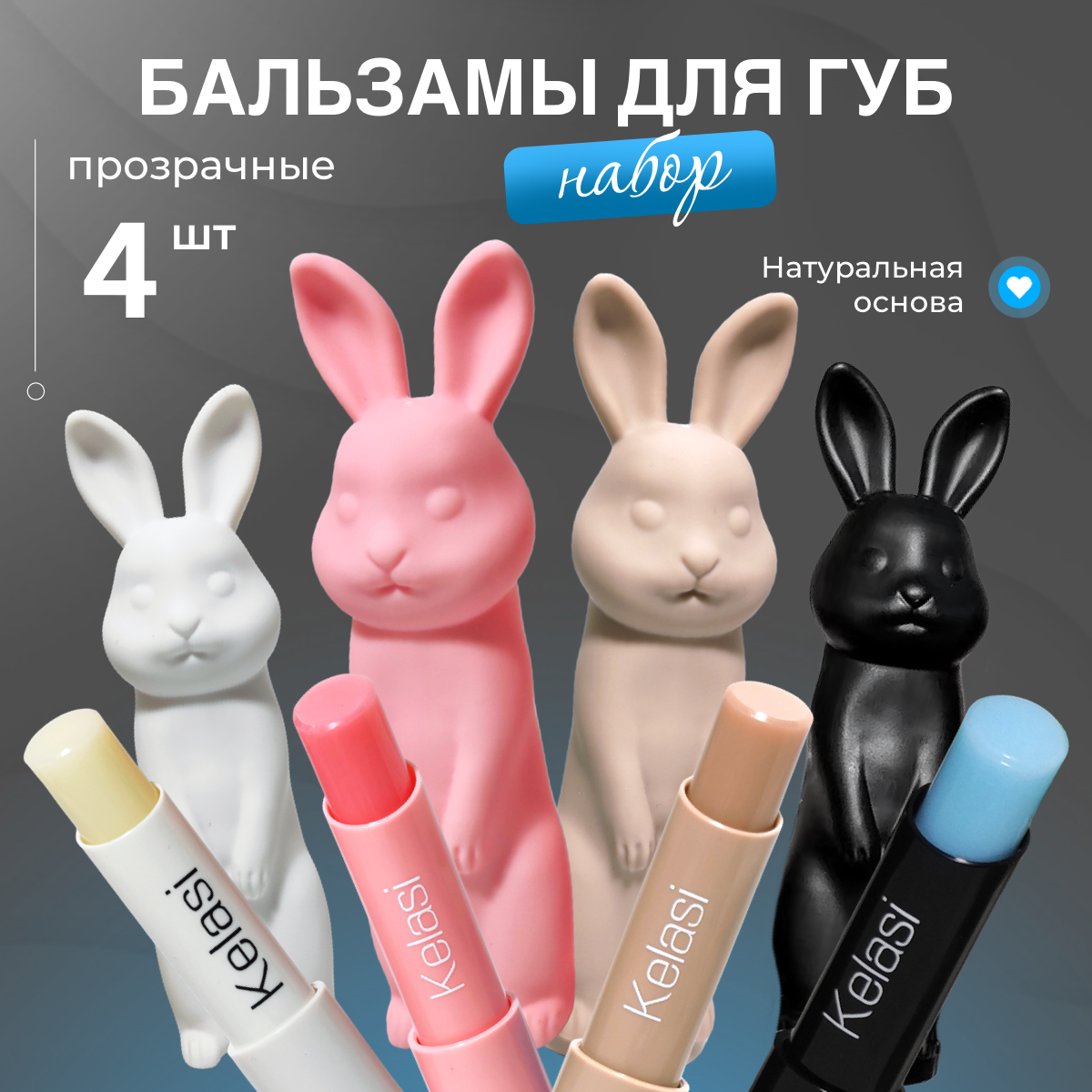 Купить Гигиенический набор бальзамов для губ в виде зайчика, Kelasi 4в1.