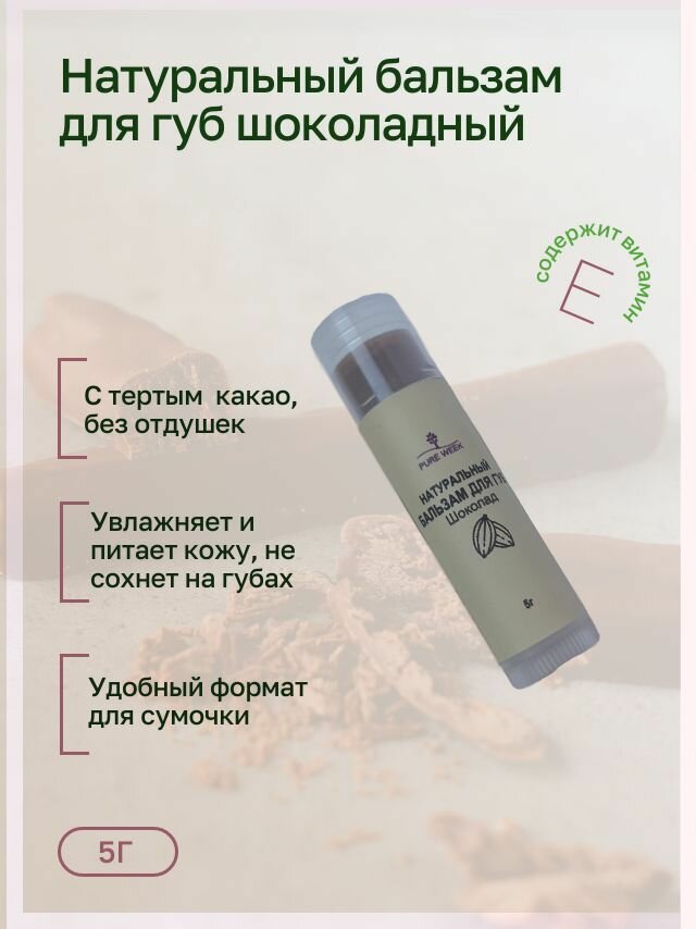 Бальзам Pureweek, натуральный, для губ, для всех типов кожи, SPF 5, шоколадный интересное: