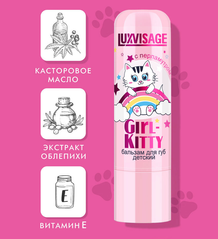 Купить Бальзам LUXVISAGE "Girl-Kitty", для губ, детский, розовый, увлажняющий