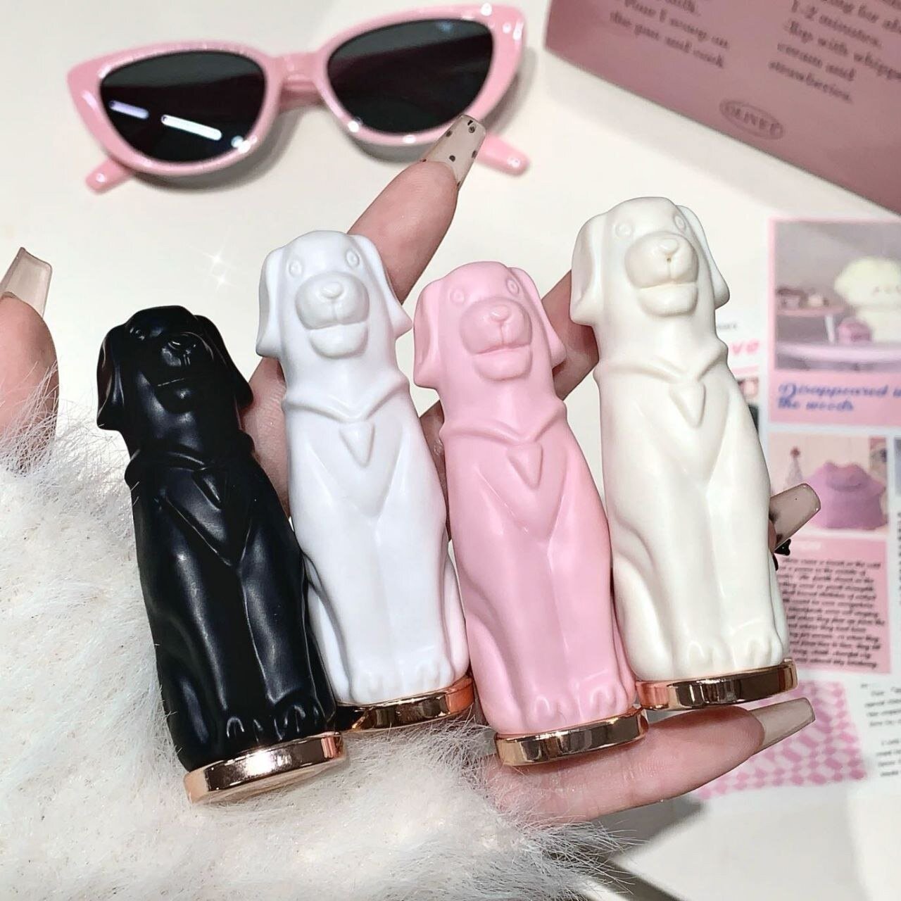 Набор увлажняющих бальзамов для губ в виде собачек 4 штуки, Kelasi