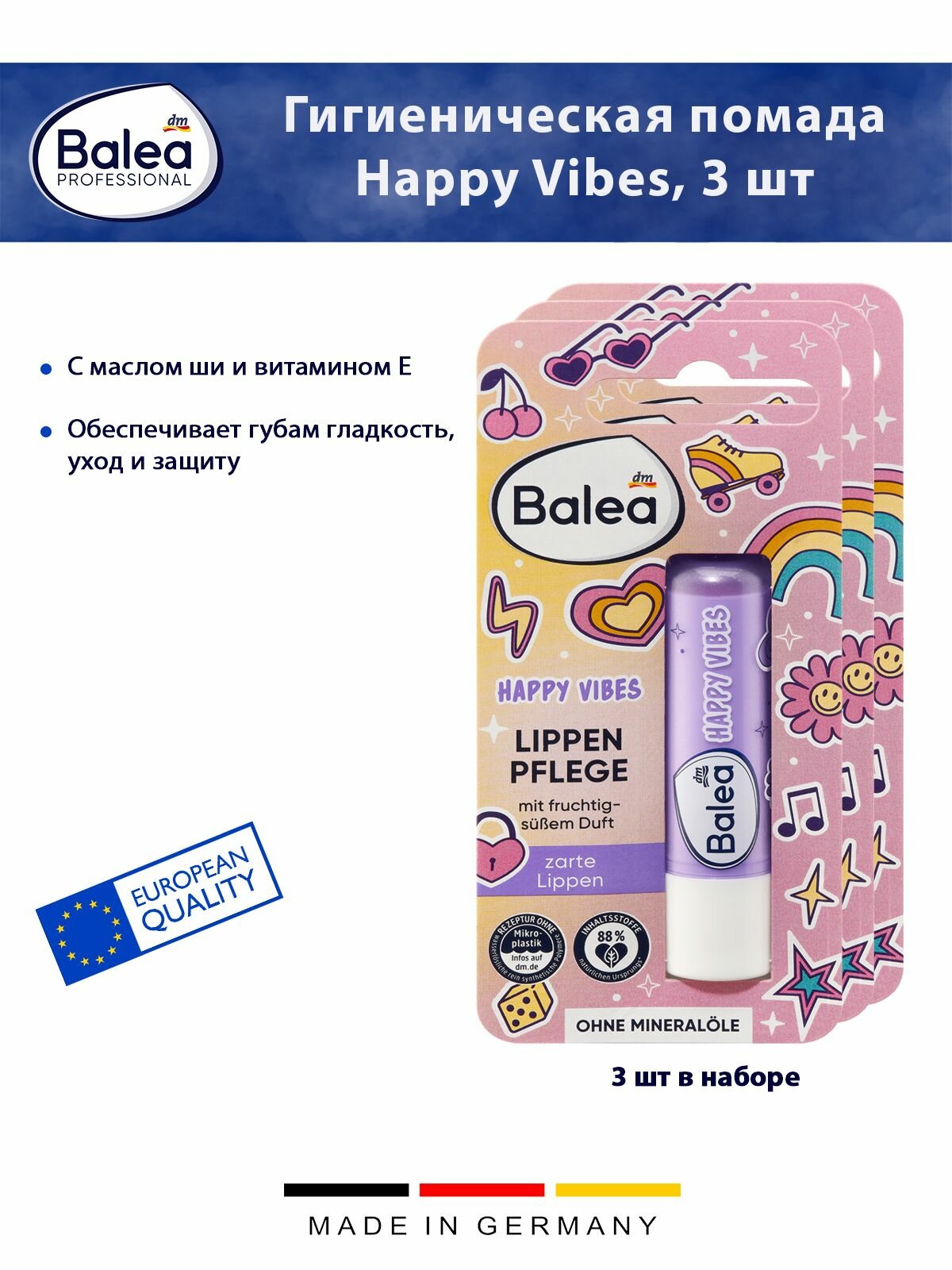 Купить Гигиеническая помада Balea - Happy Vibes, с маслом ши и витамином E, 4.8 г, 3 шт