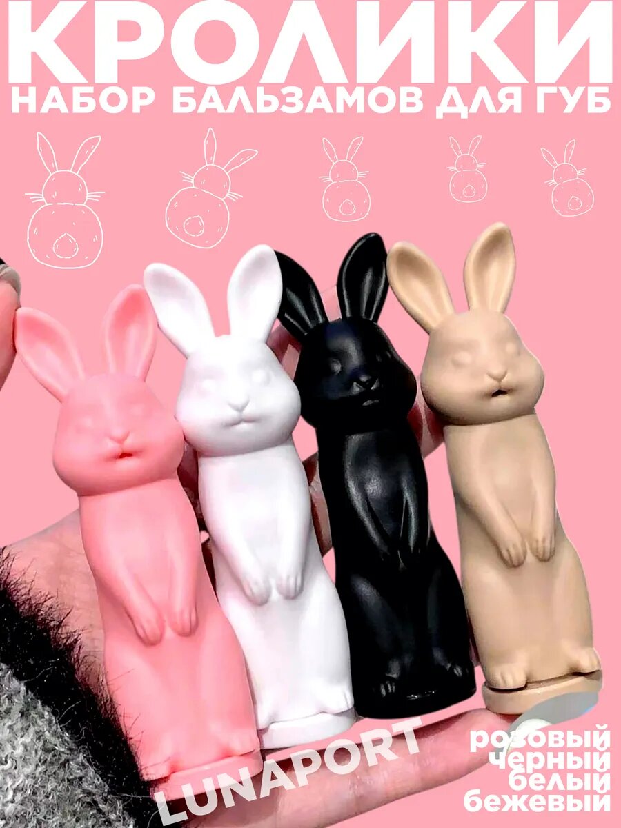 Бальзам для губ LUNAPORT "Зайчики", увлажнение и питание, 4шт интересное: