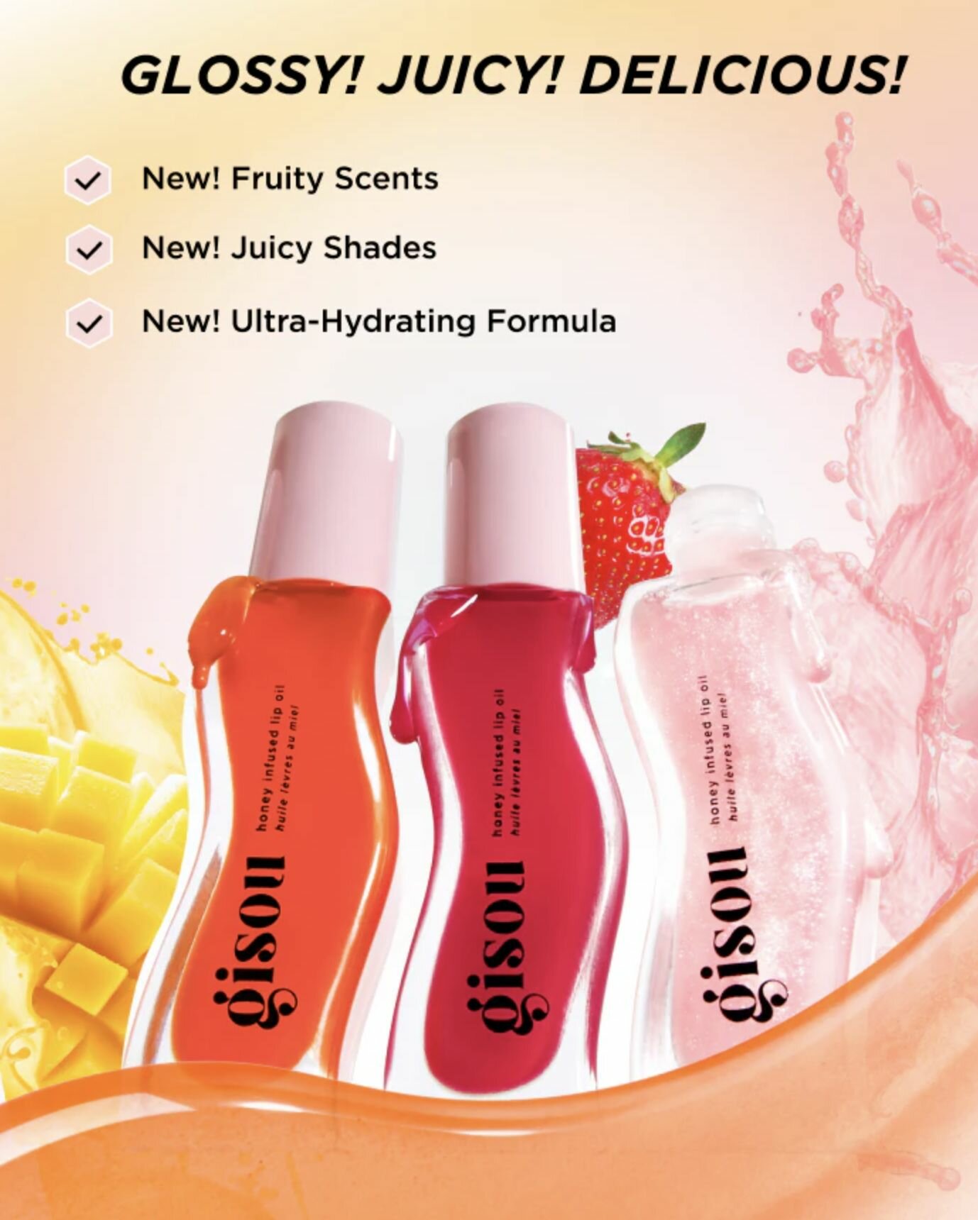 Масло для губ на меду Gisou Honey Infused lip oil Juicy strawberry клубника