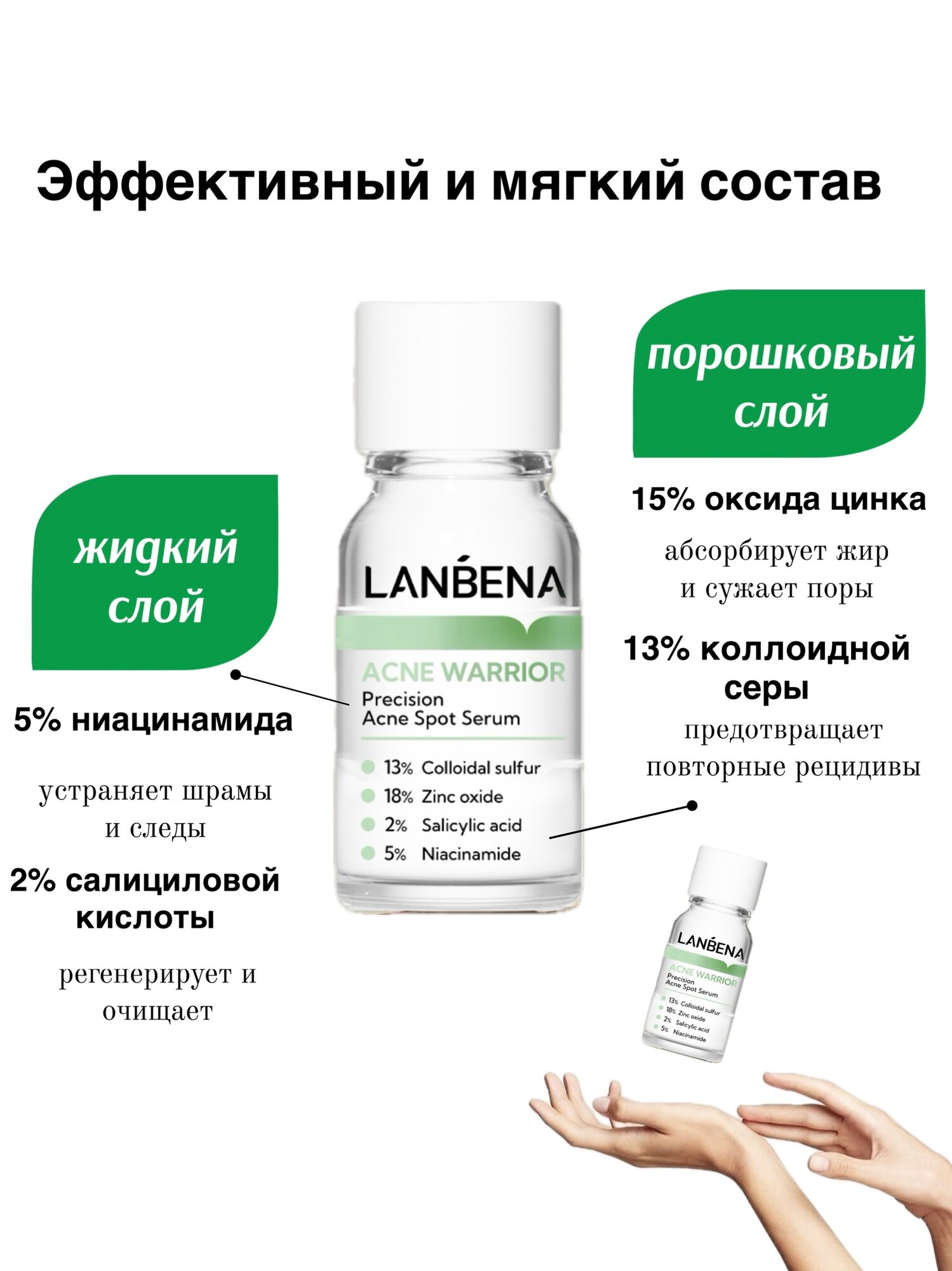 Точечная салициловая сыворотка с ниацинамидом от подкожных прыщей Lanbena против рубцов, постакне и пигментации интересное: