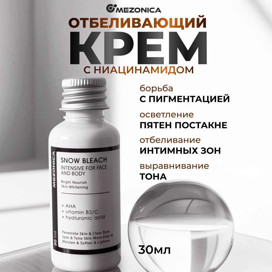 Крем отбеливающий для лица, подмышек, интимных зон, с гиалуроновой кислотой, AHA кислотами и ниацинамидом 30мл интересное: