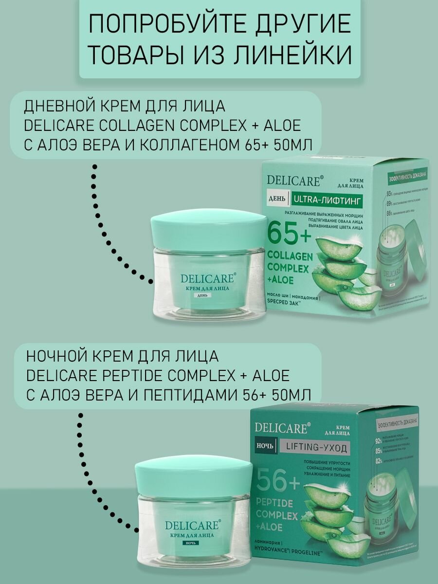 Дневной крем для лица Delicare Collagen Complex с алоэ вера и коллагеном 65+, 50мл интересное: