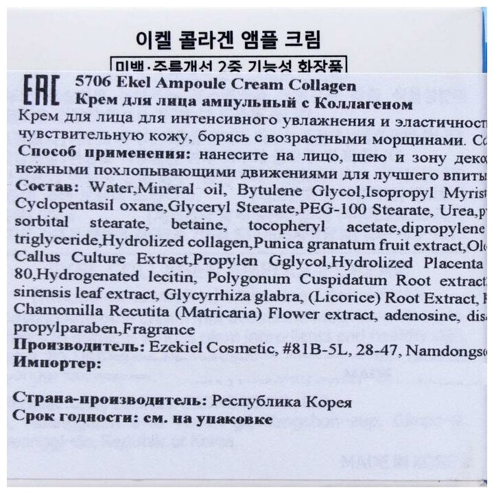 Ekel Крем для лица с коллагеном / Collagen Ampoule Cream, 50 мл интересное: