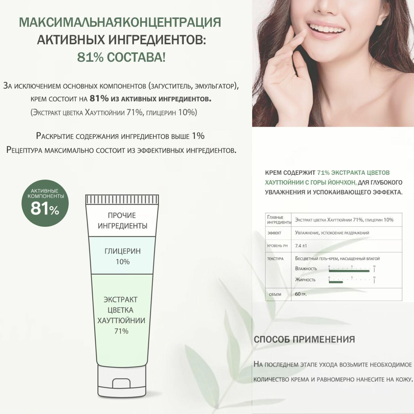 СохранитьDerma Factory Увлажняющий крем для лица с экстрактом цветка хауттюйнии 71% интересное: