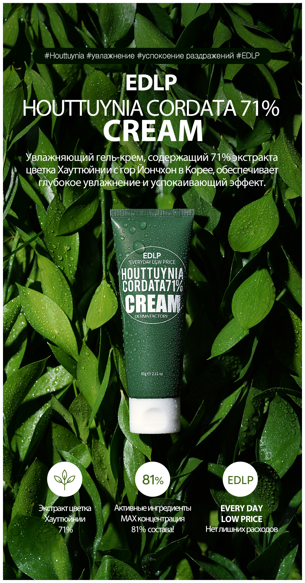DERMA FACTORY Крем-гель для лица экстракт цветка хауттюйнии Houttuynia Cordata 71% Cream, 60 мл