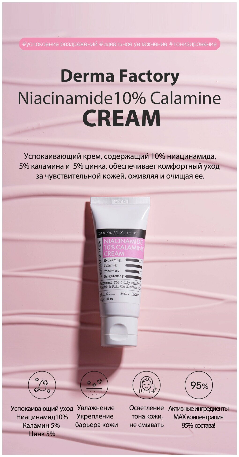 Купить Derma Factory успокаивающий крем для лица Niacinamide 10% Calamine Cream 30 мл.
