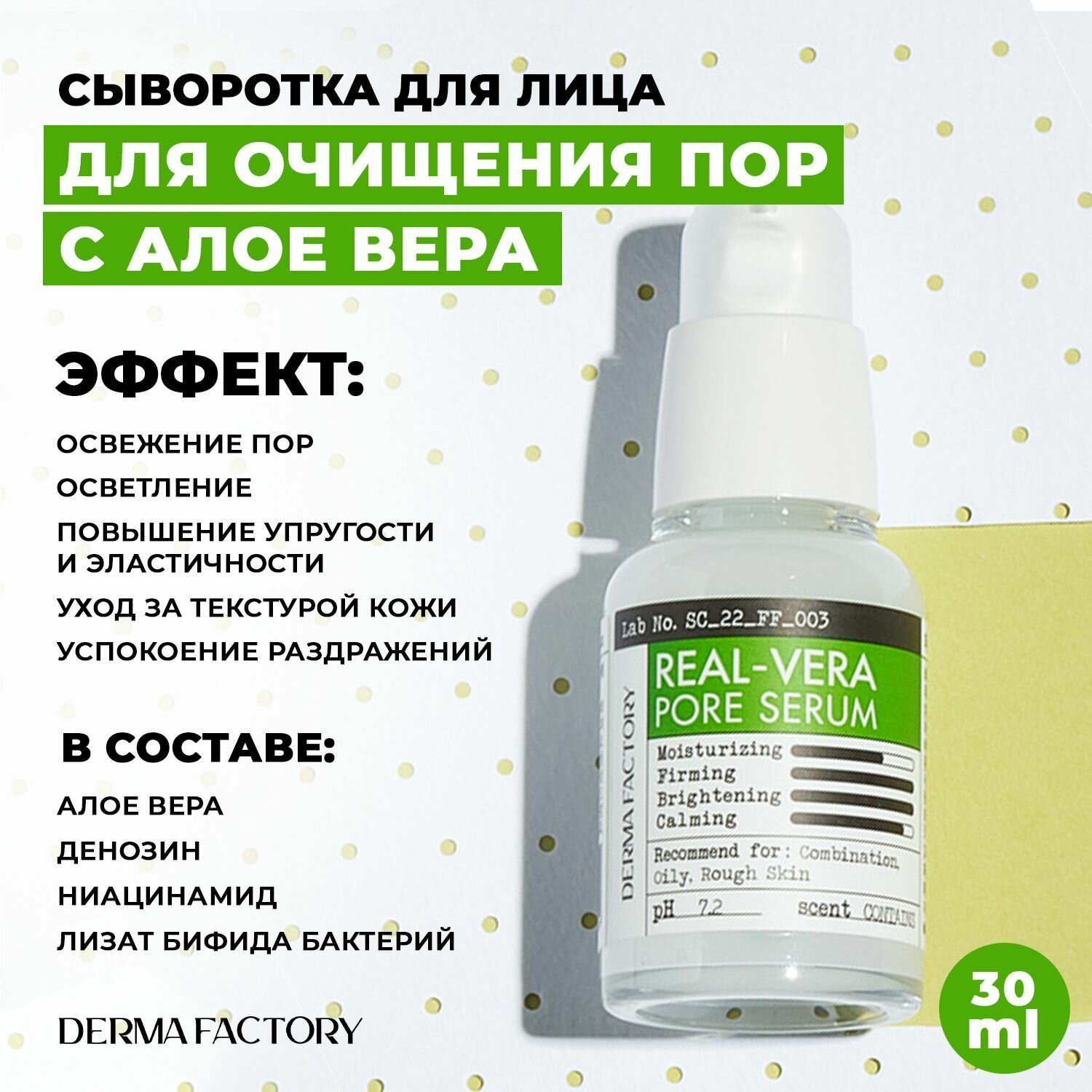 СохранитьСужающая поры сыворотка для лица Derma Factory с экстрактом алое вера интересное: