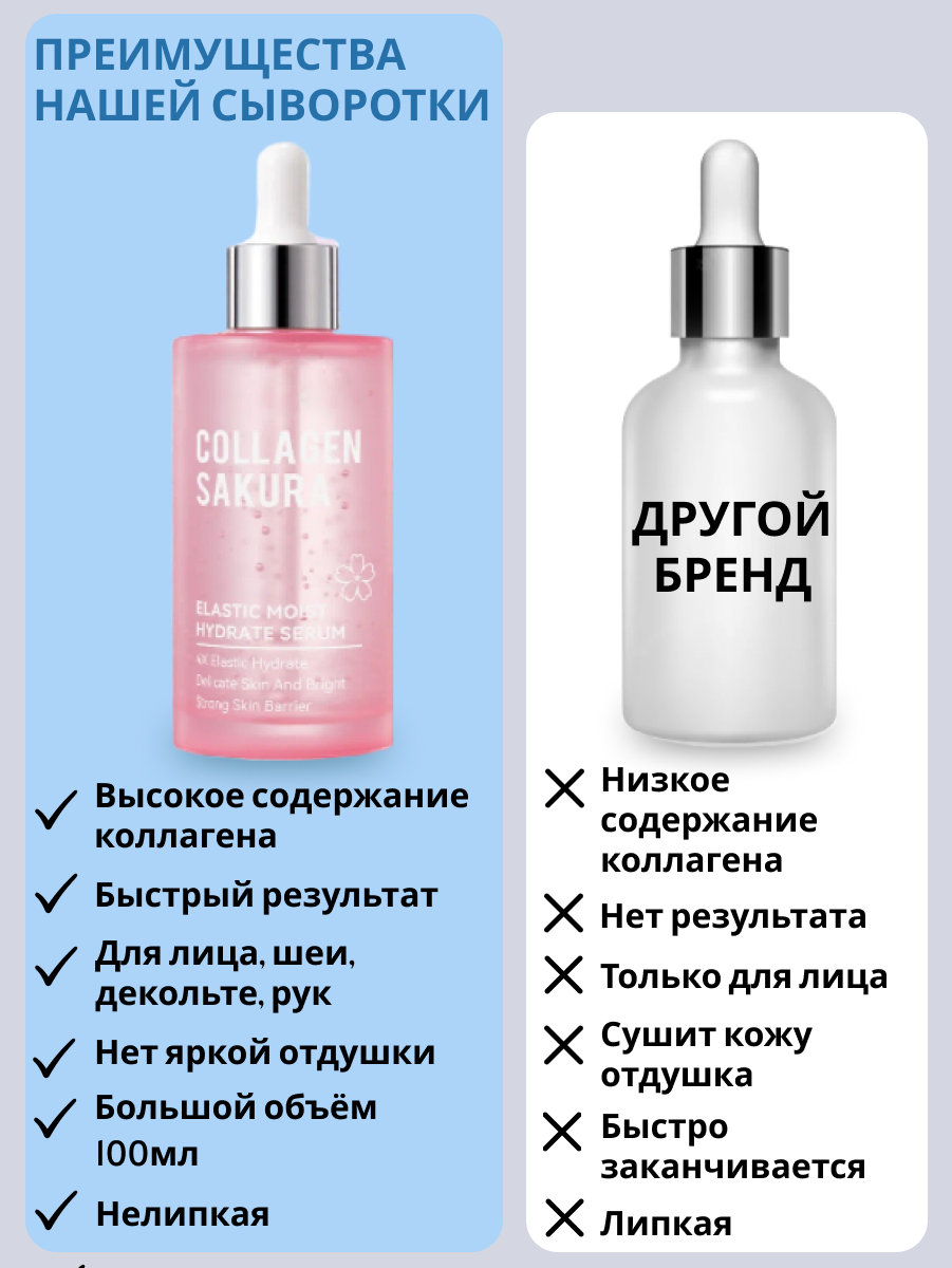 Сыворотка для лица с коллагеном. Экстракт сакуры. Омоложение. Против морщин. 100мл интересное: