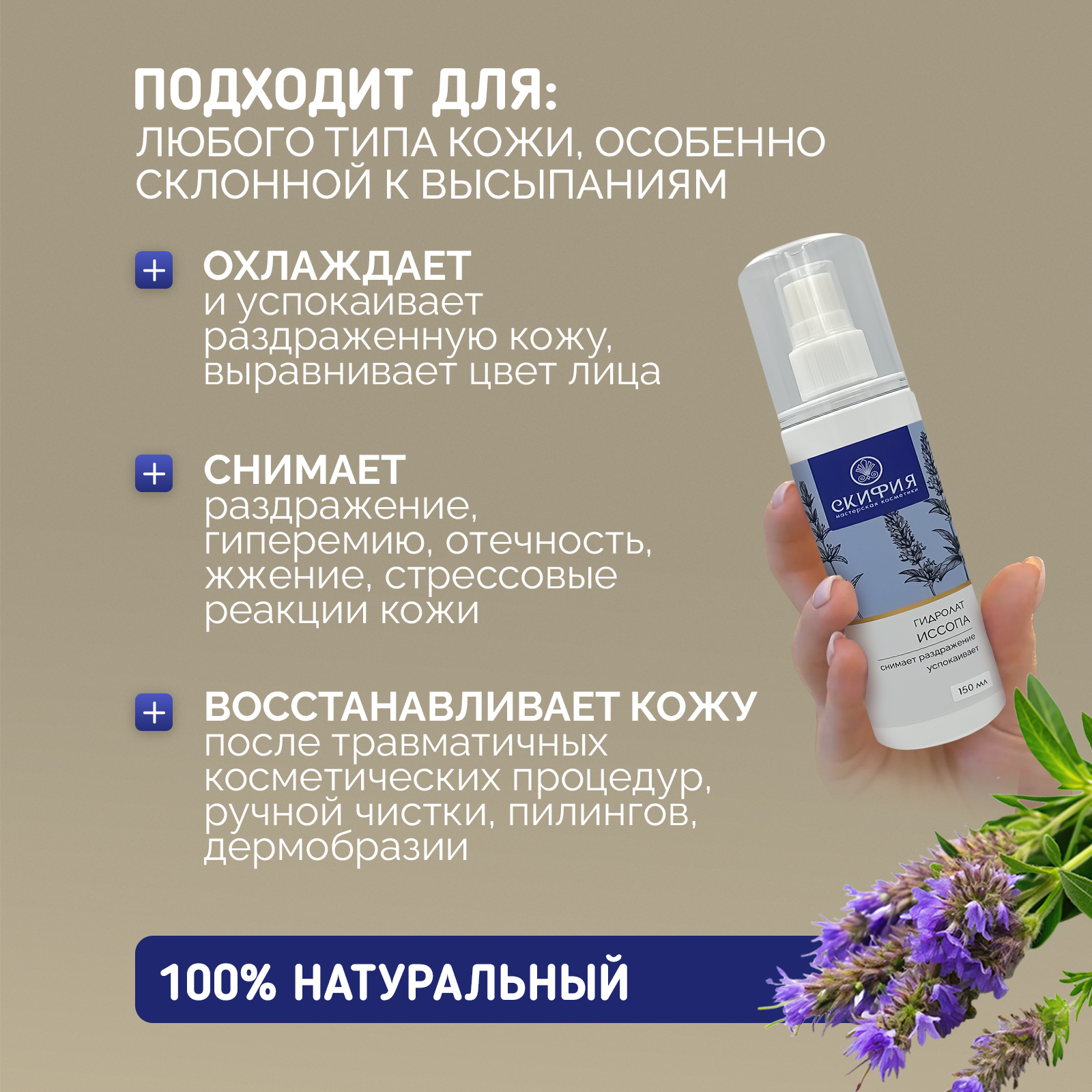 Купить Гидролат иссопа натуральный для лица и тела Скифия, 150 мл