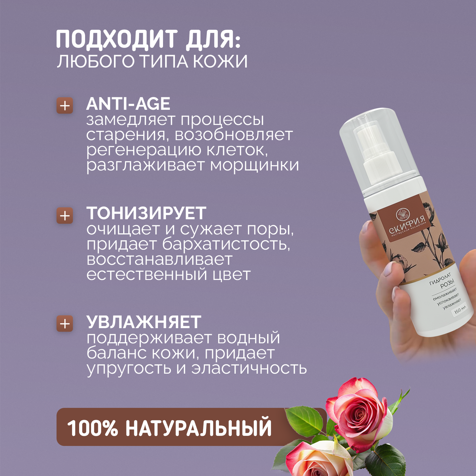 Купить Гидролат розы натуральный для лица и тела Скифия, 150 мл