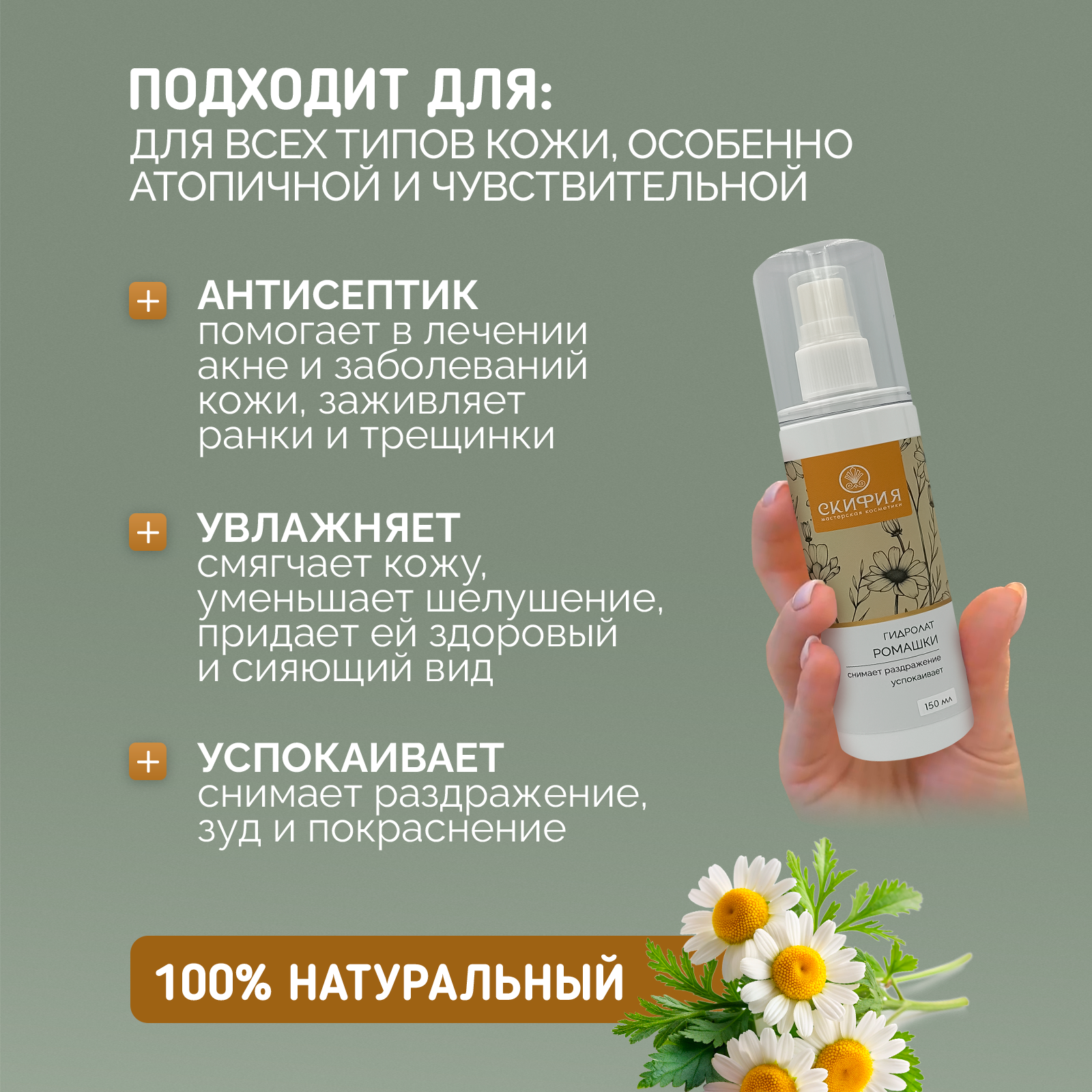 СохранитьГидролат ромашки для лица натуральный Скифия, 150 мл интересное: