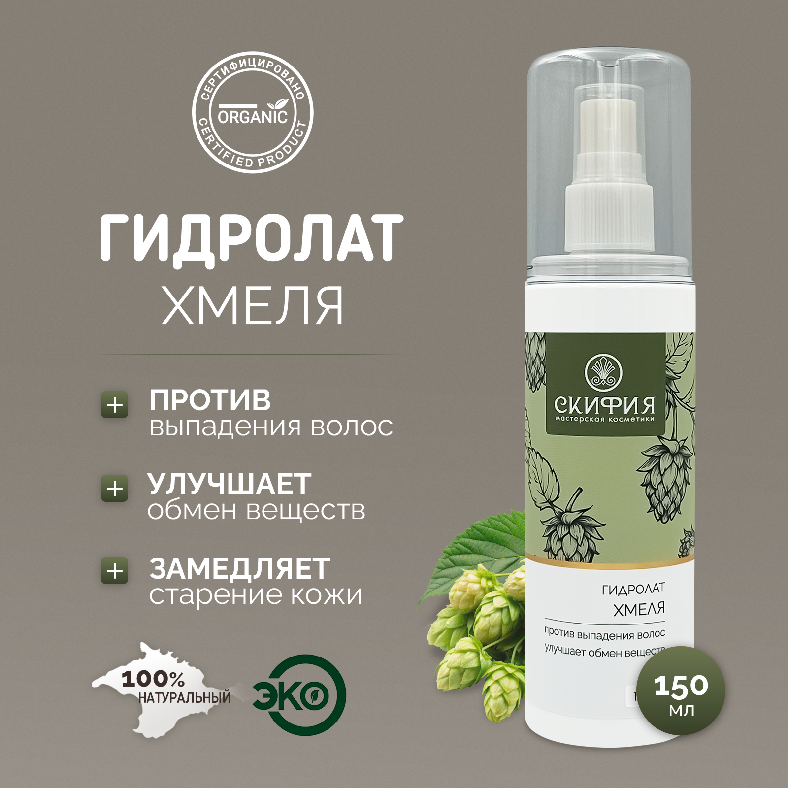 Купить Гидролат хмеля натуральный для лица и волос Скифия, 150 мл