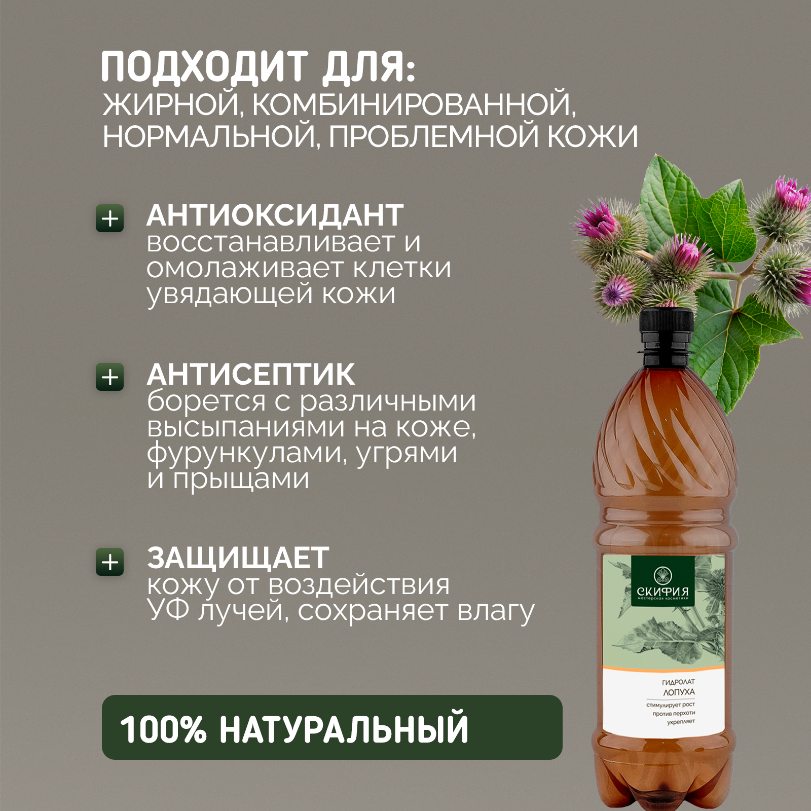 СохранитьГидролат лопуха для волос натуральный Скифия, 1 литр интересное: